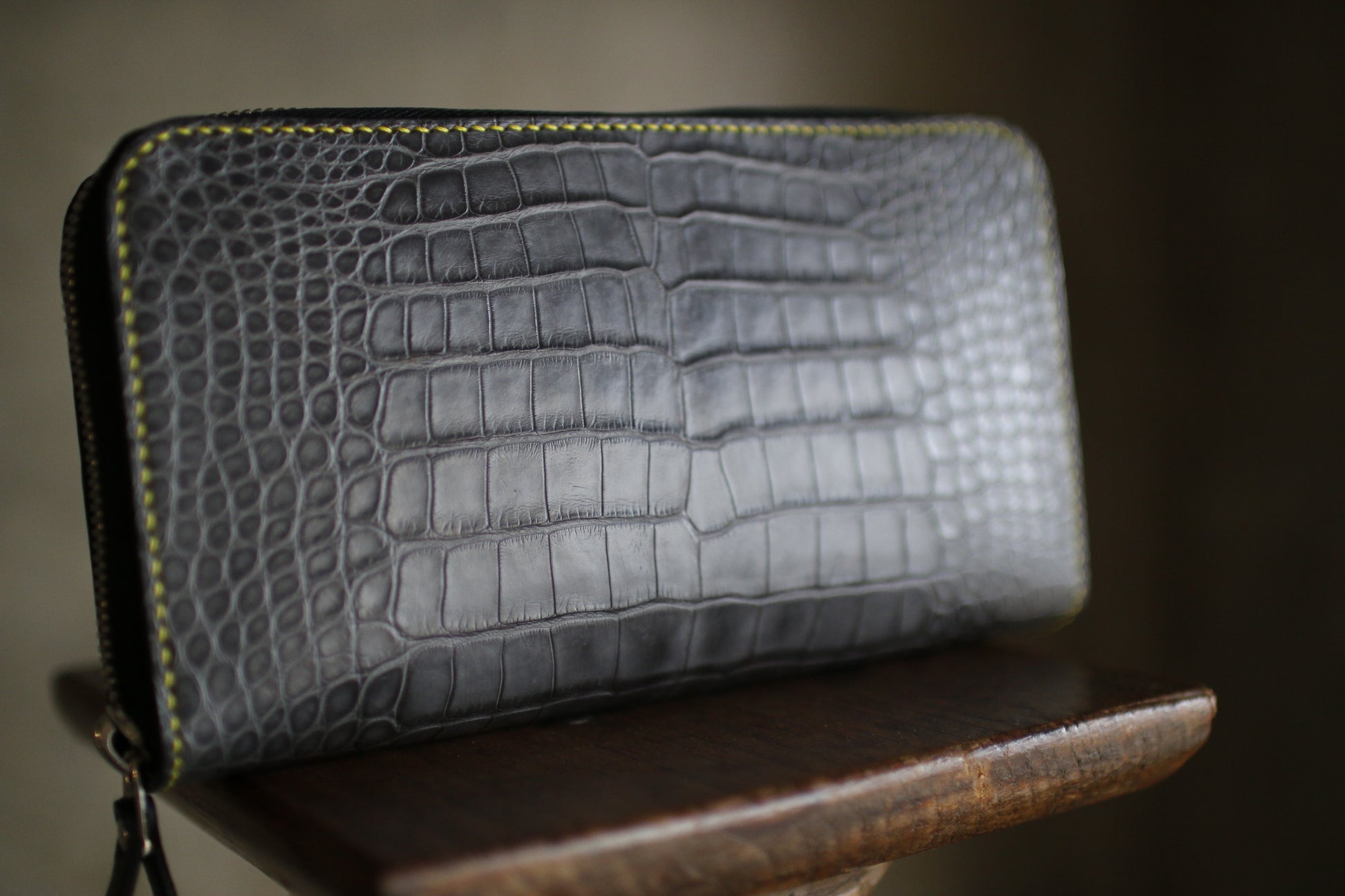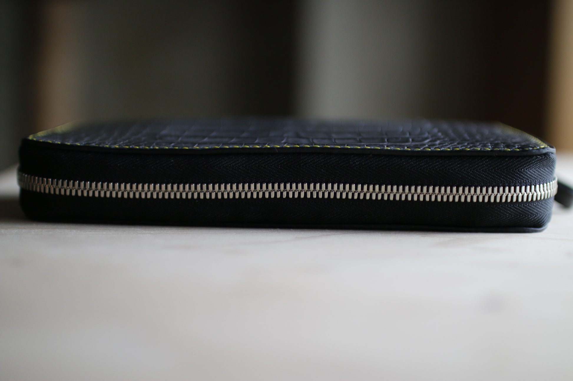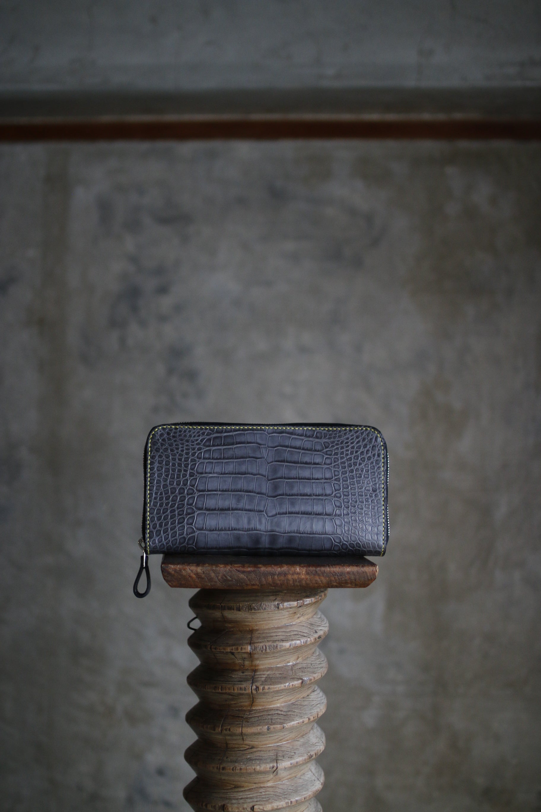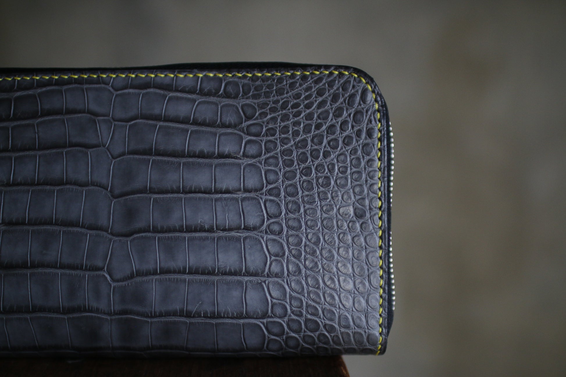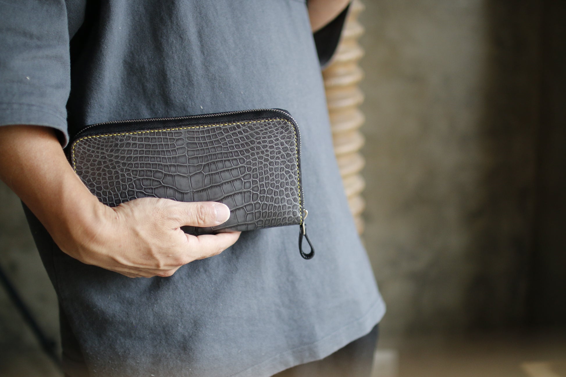 墨黒仕上げのアリゲーターオーガナイザー長財布。