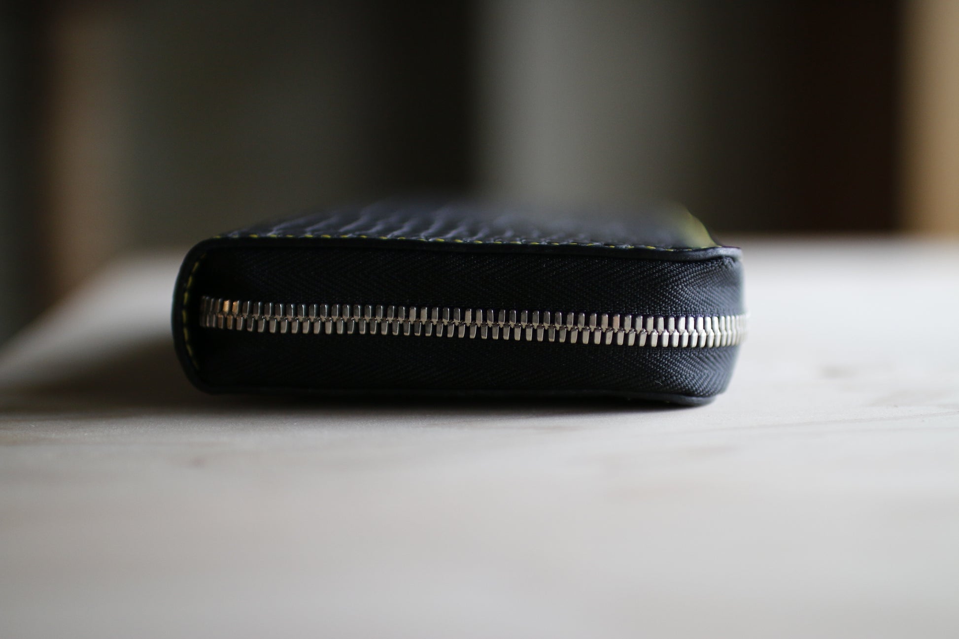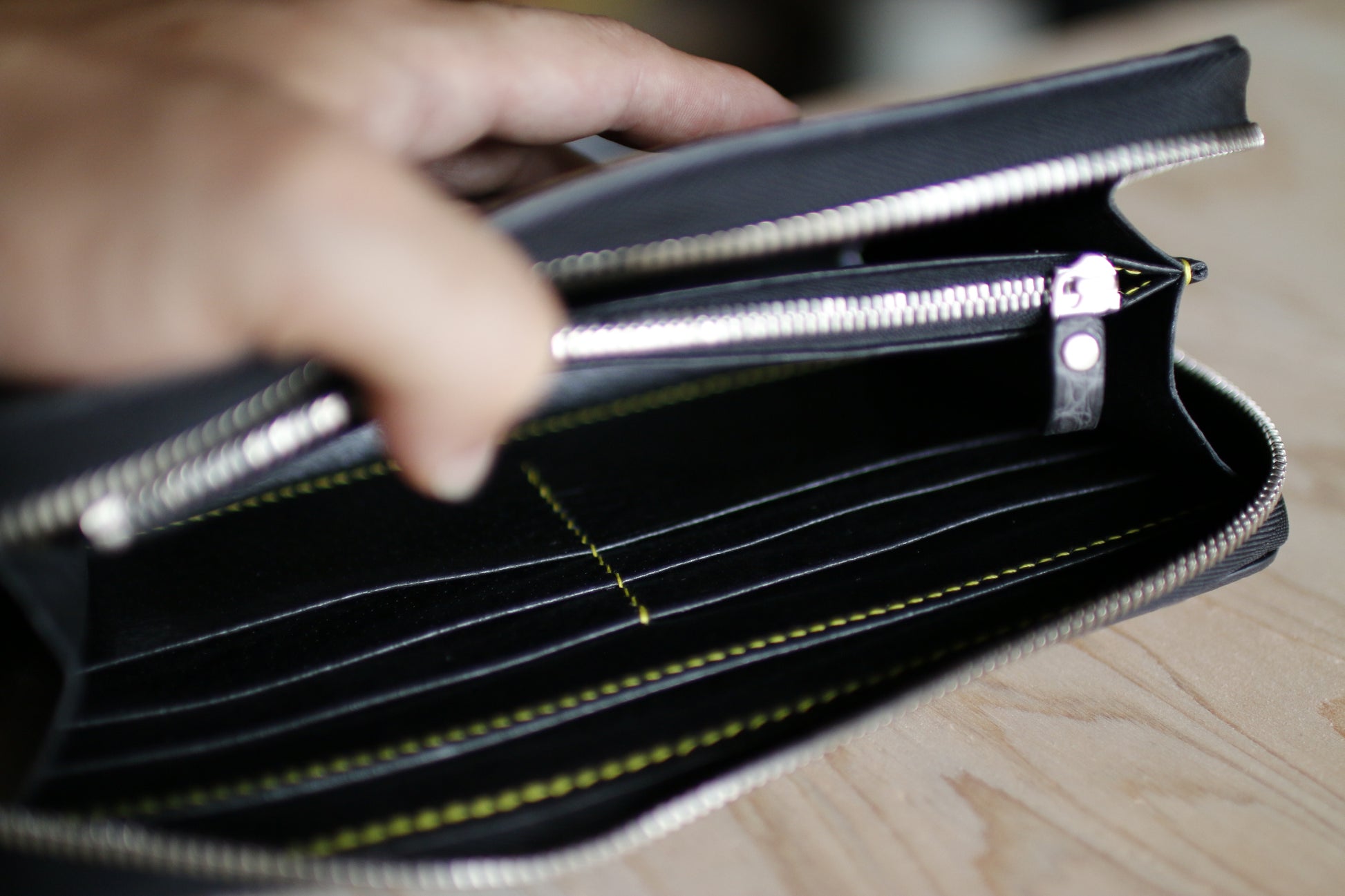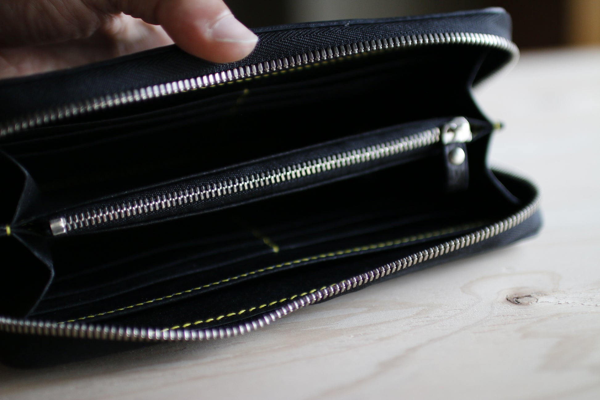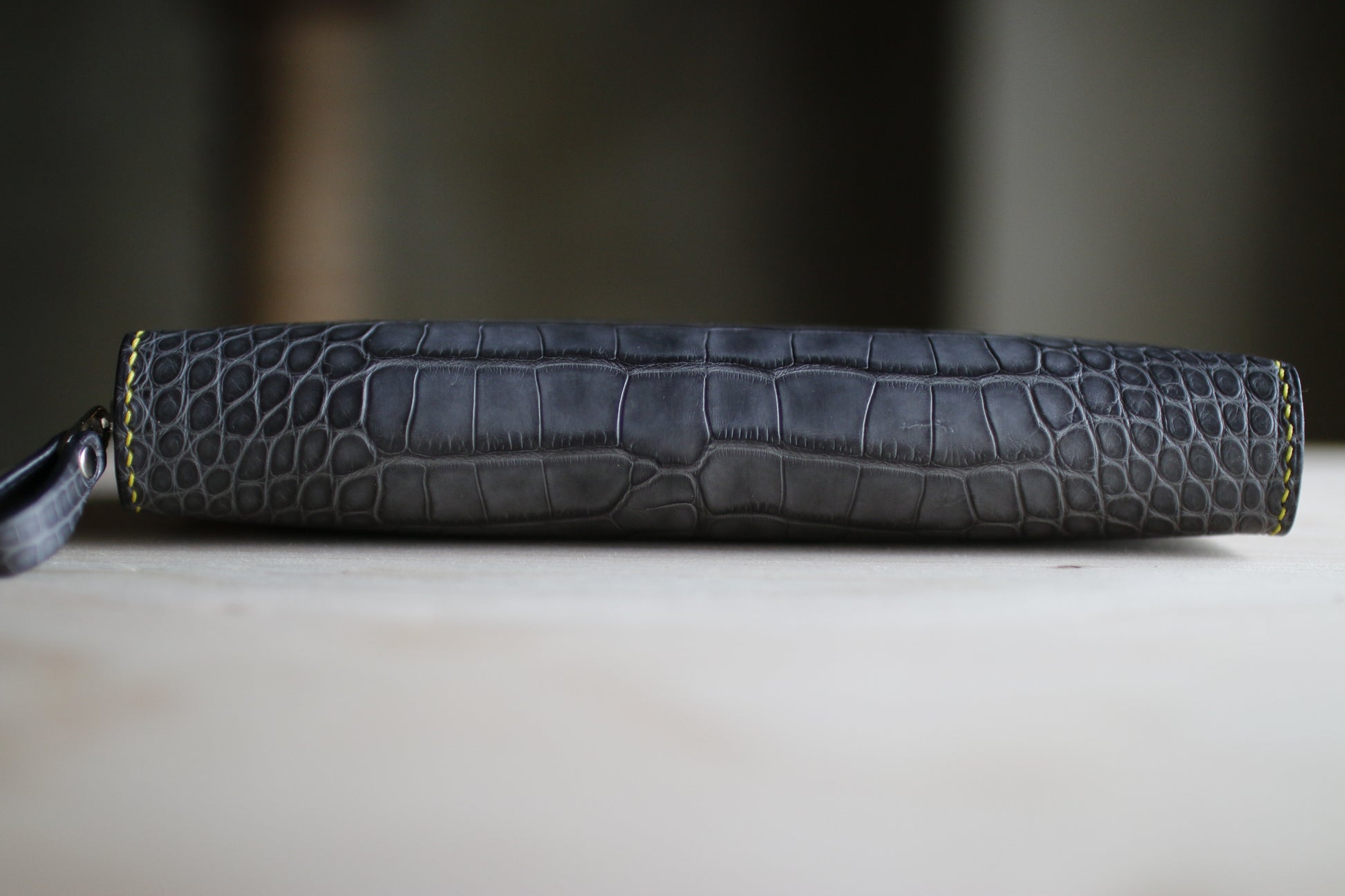 墨黒仕上げのアリゲーターオーガナイザー長財布。