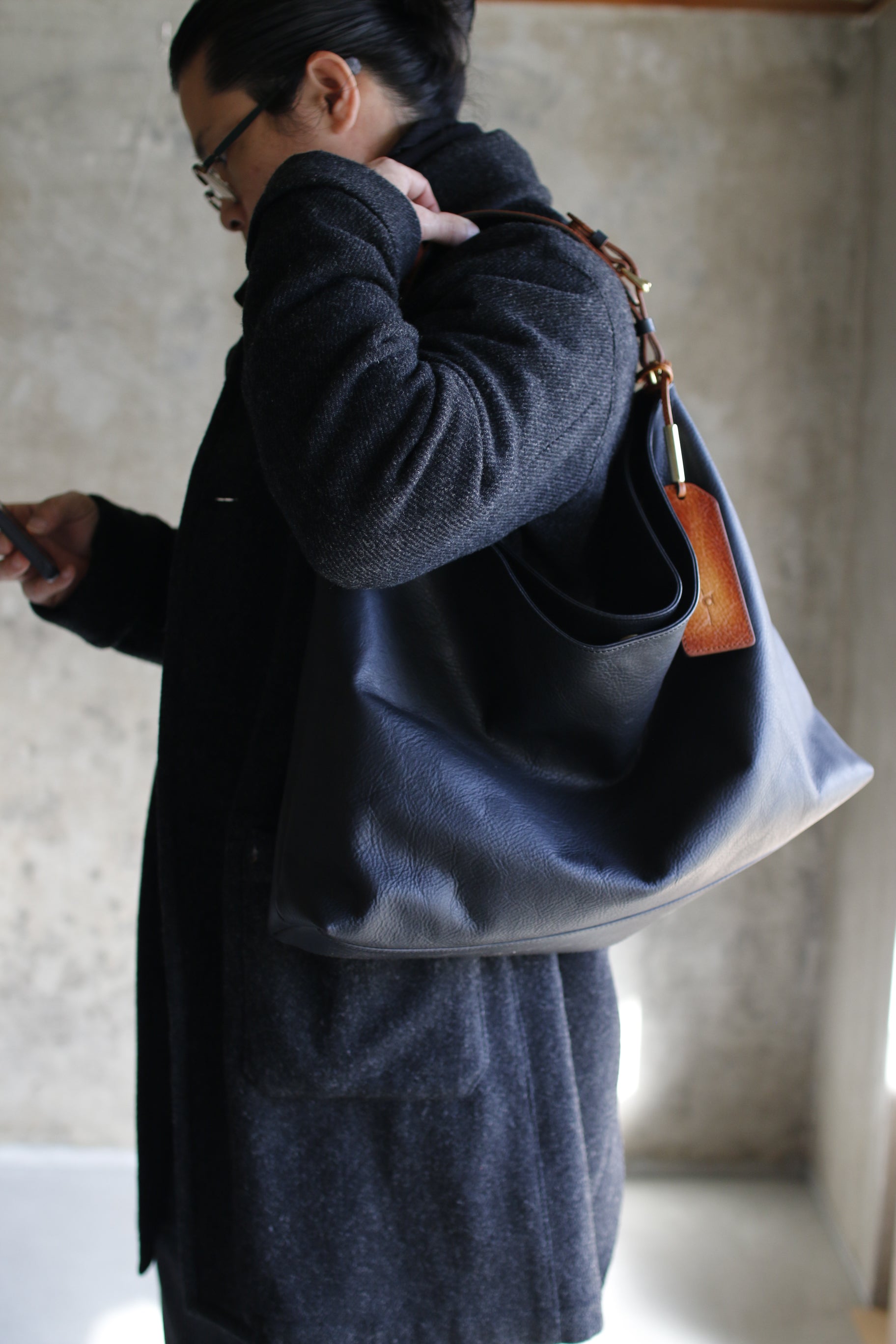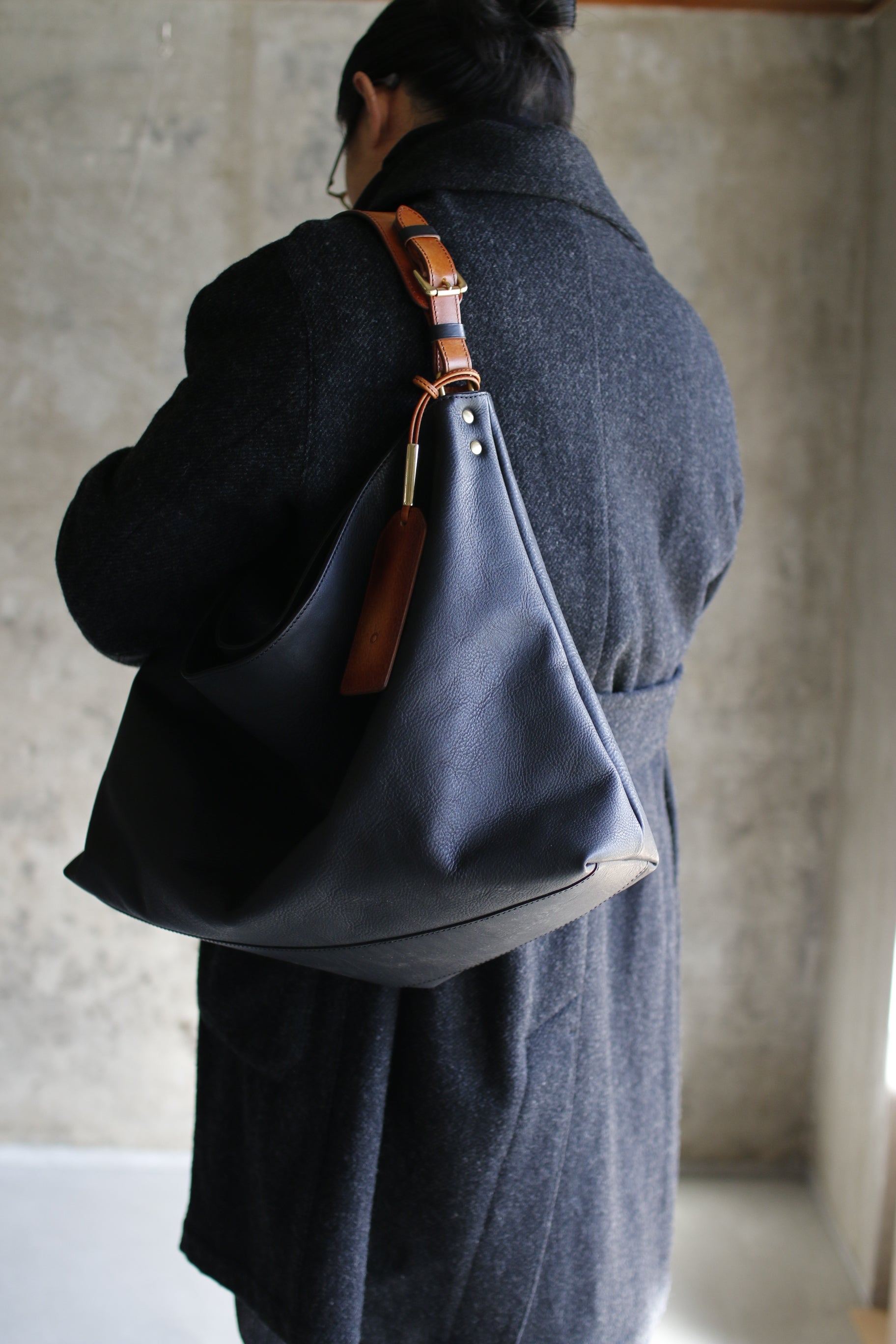 くたっとした表情のソフトワンショルダーバッグ。
