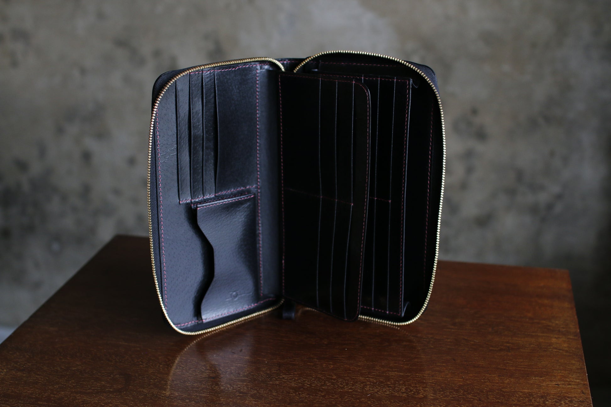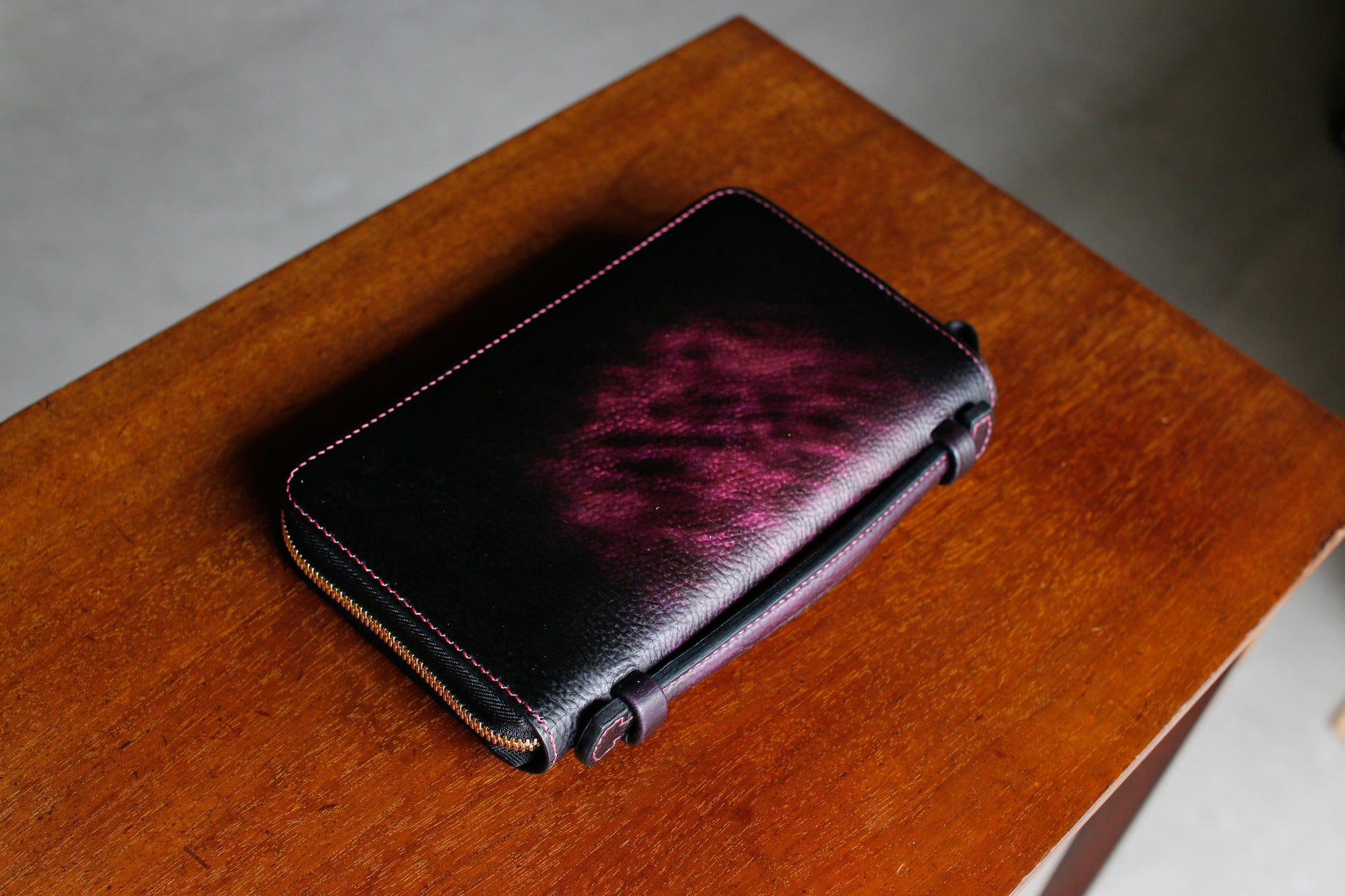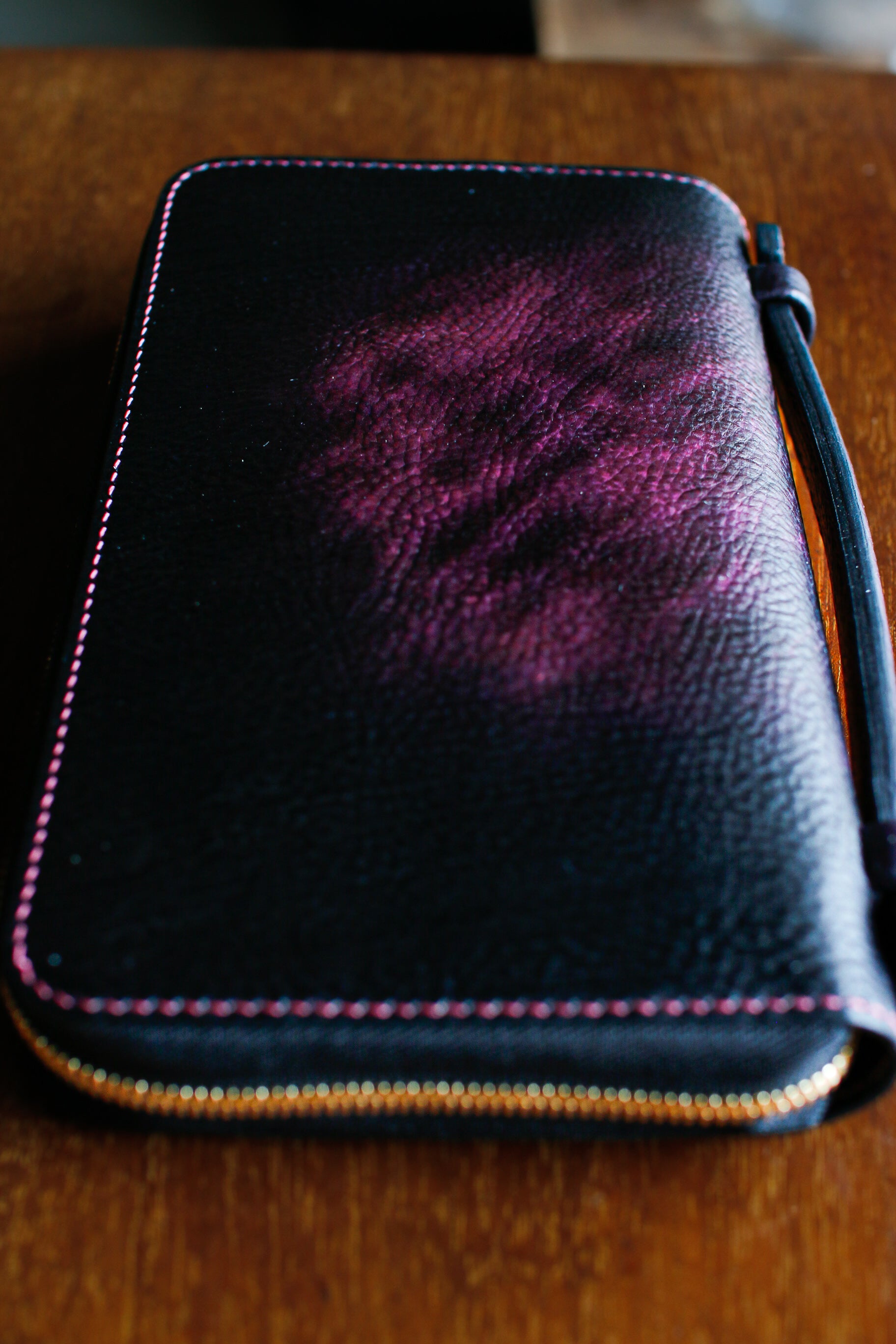 【オーダー】ハンドダイパープルの総手縫いオーガナイザー財布