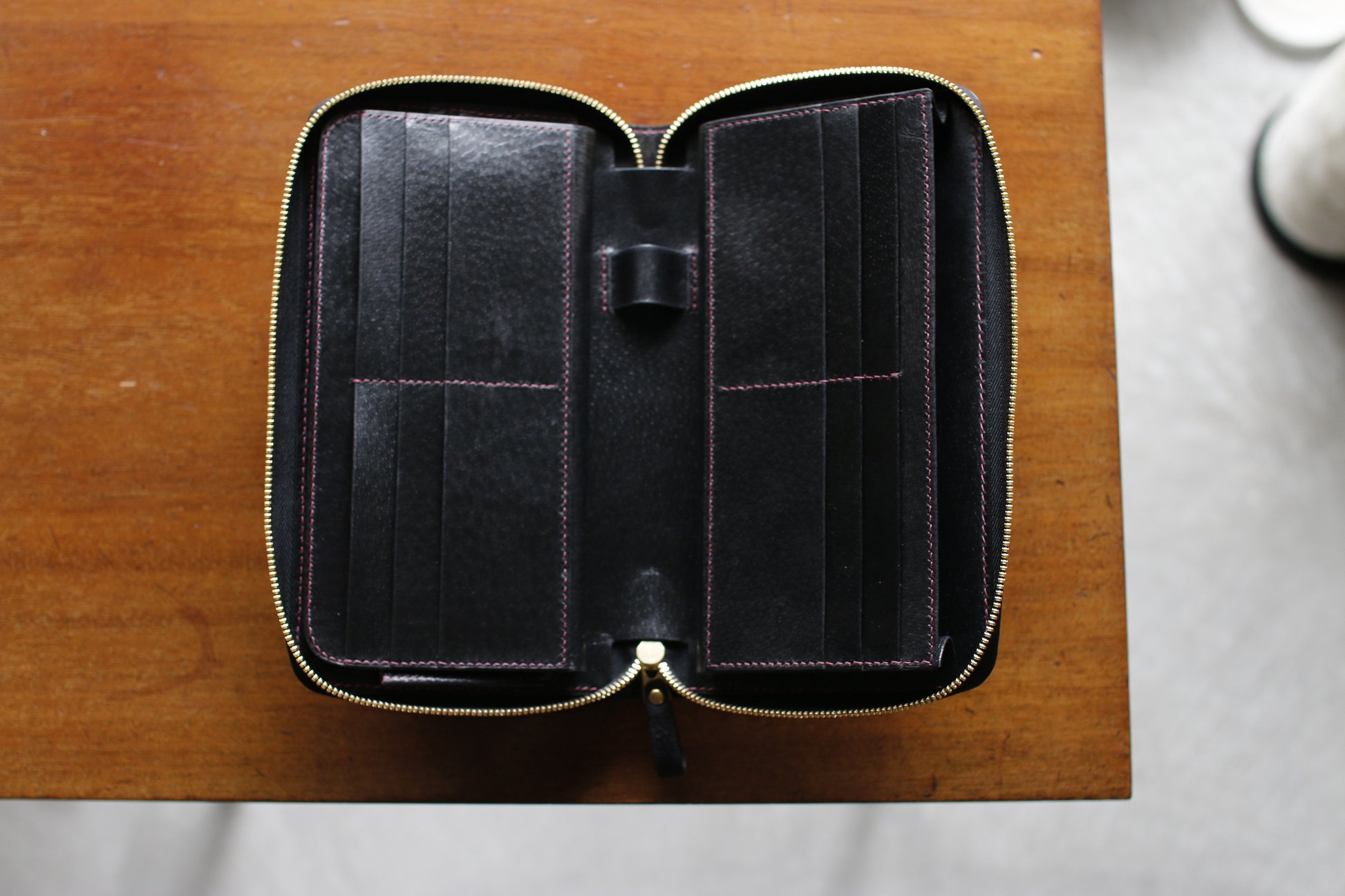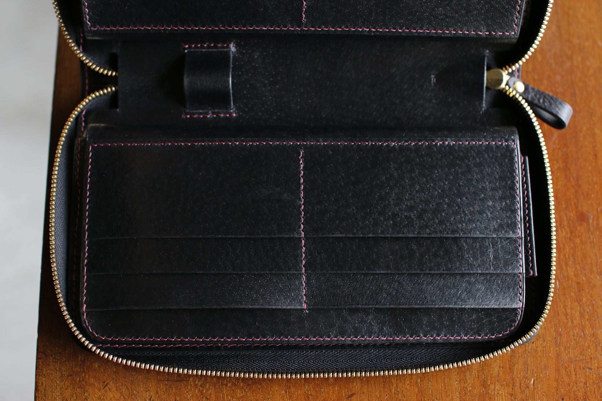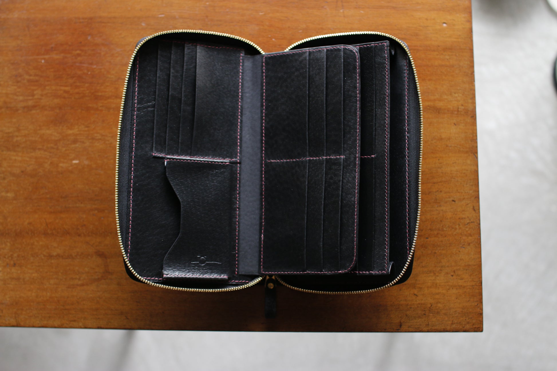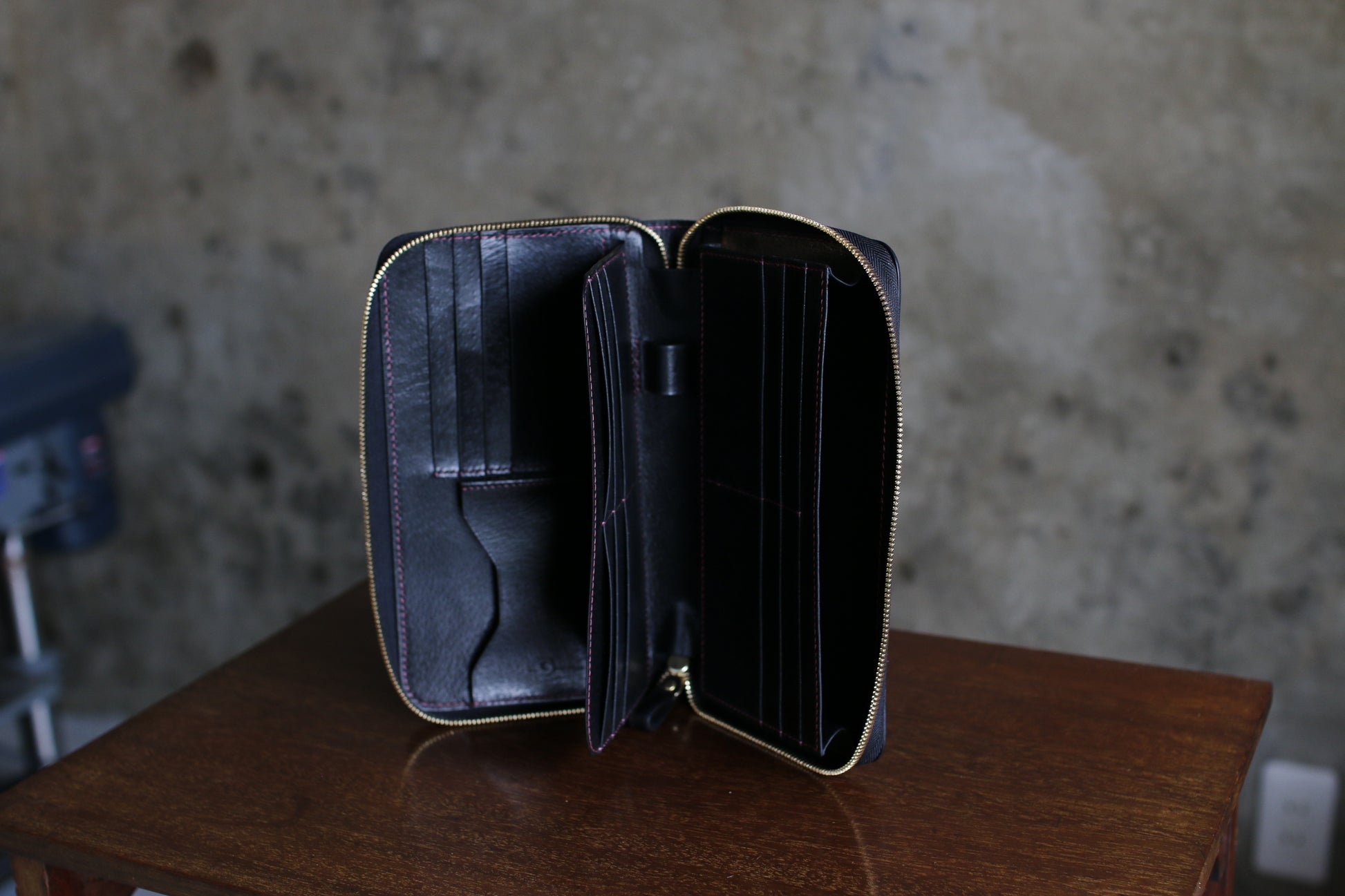【オーダー】ハンドダイパープルの総手縫いオーガナイザー財布