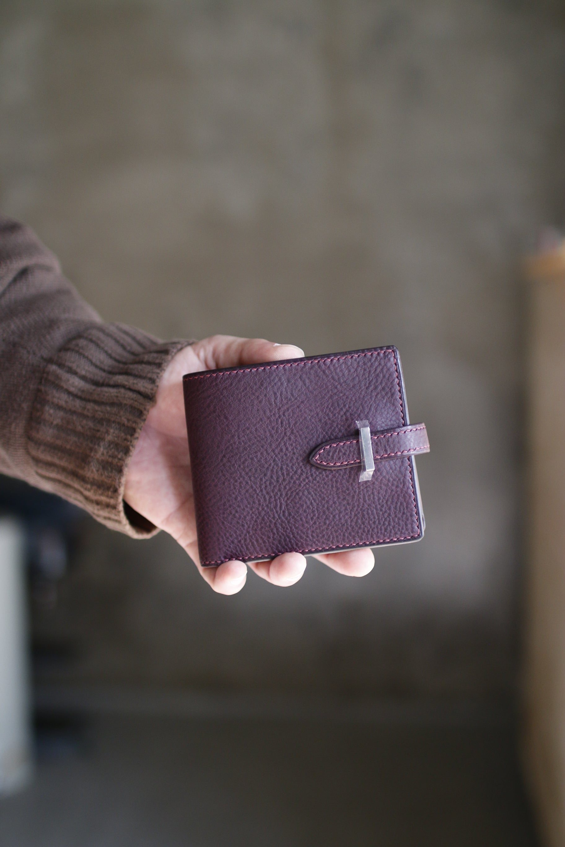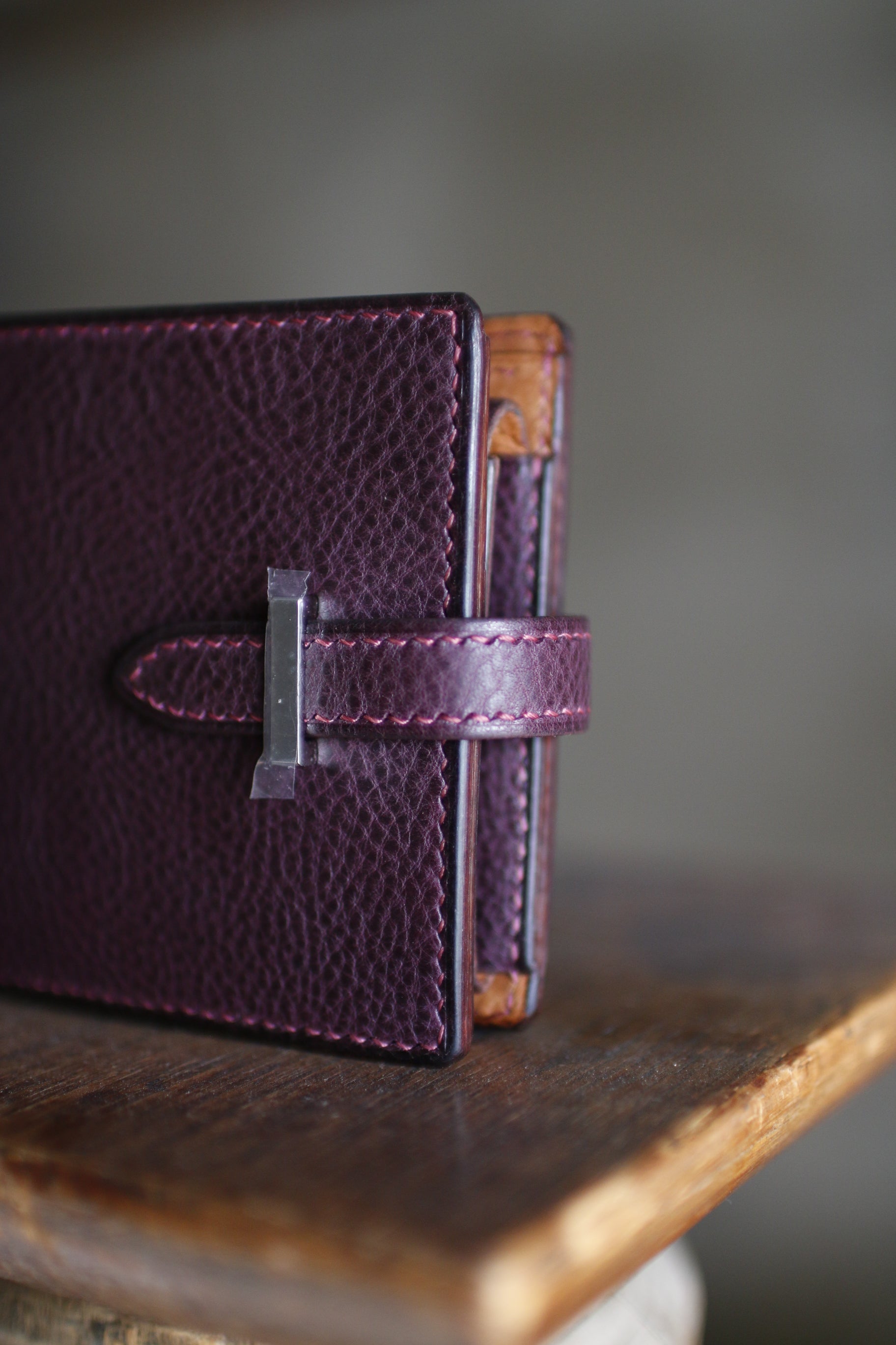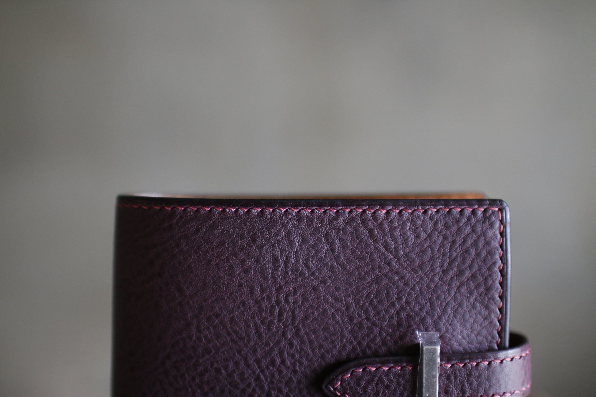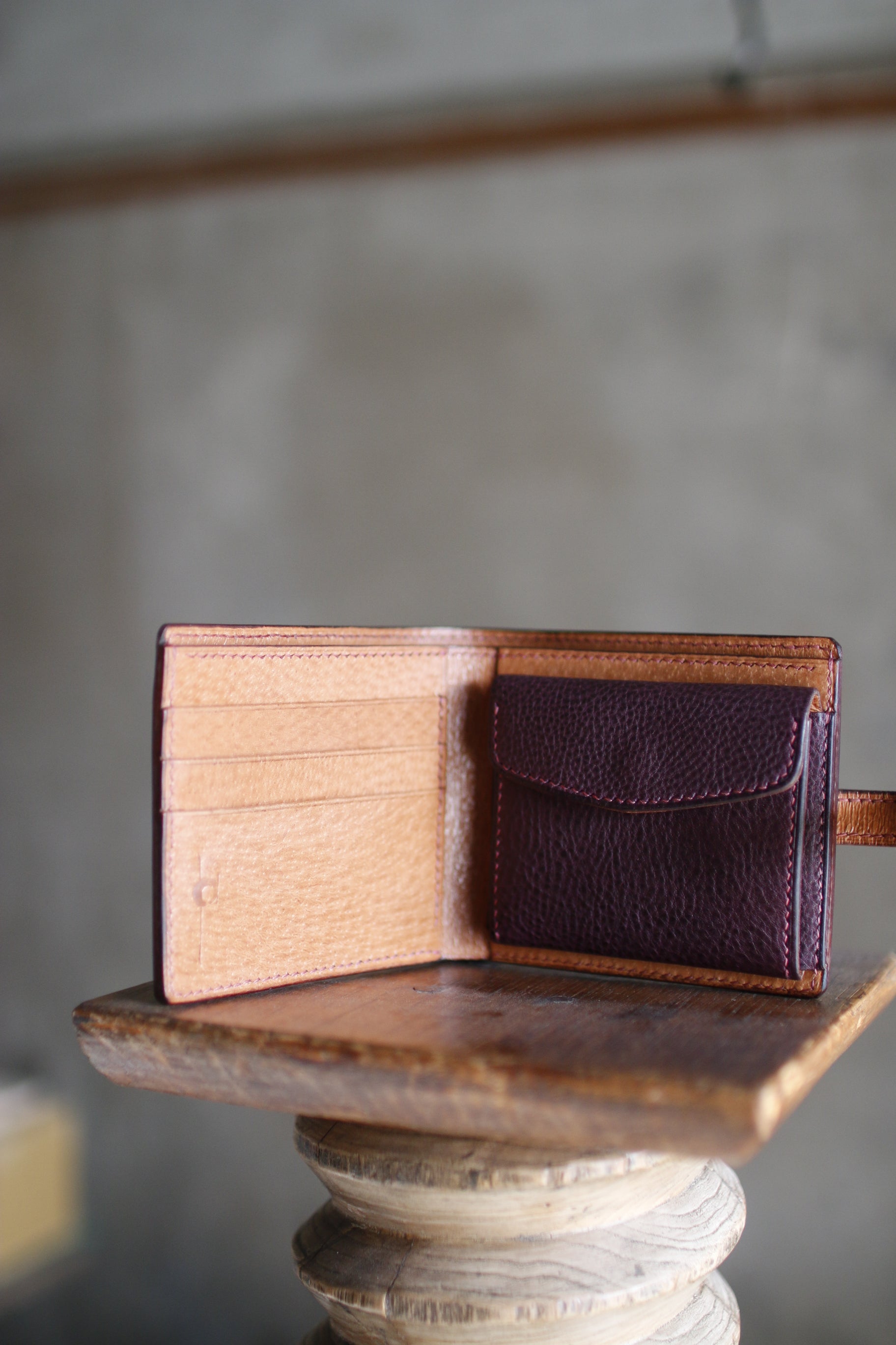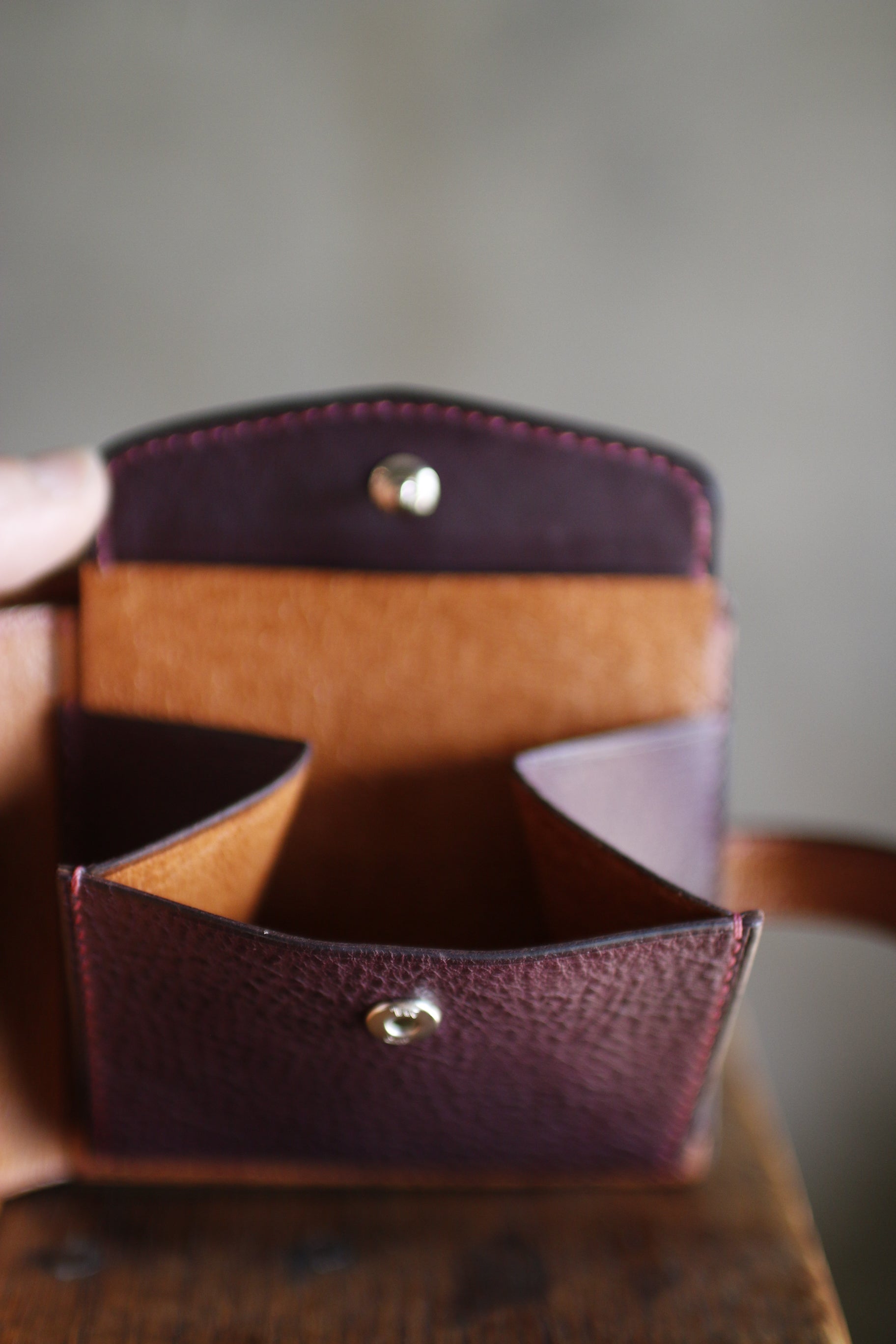 【オーダー】パープル×キャメル×ピンクの折財布※総手縫い