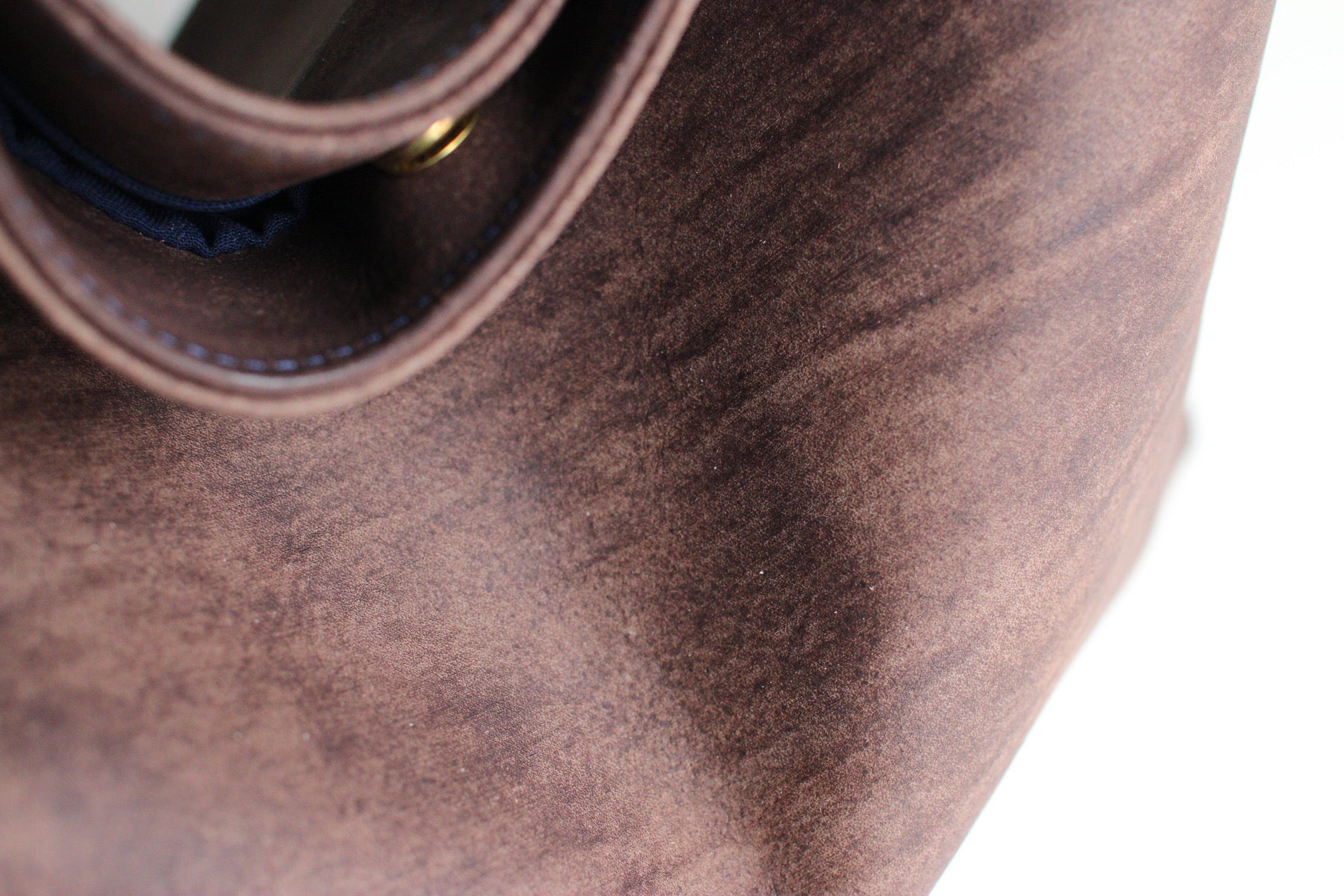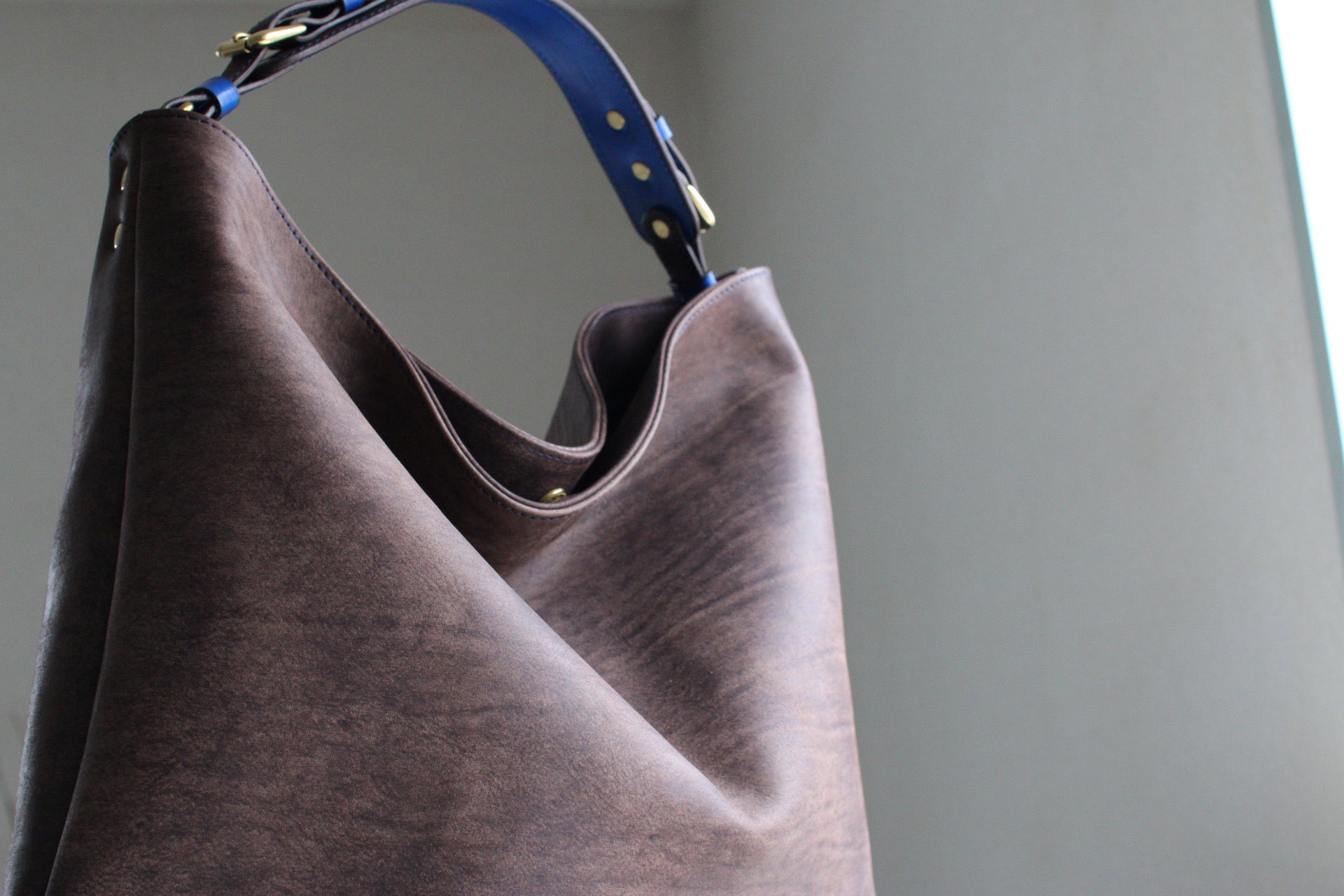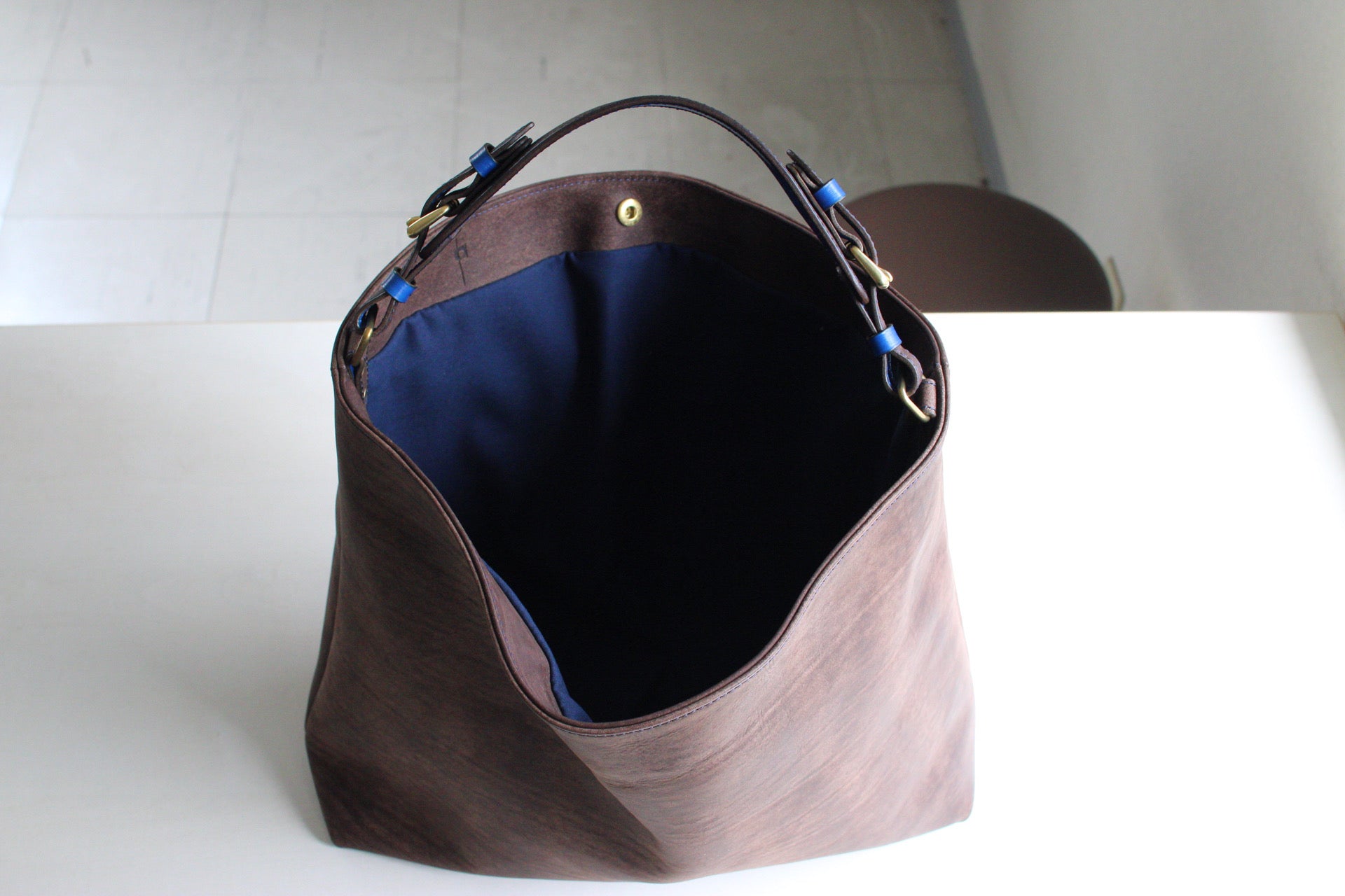 茶系色の本体に鮮やかな青の配色が良い雰囲気のワンショルダーバッグ。