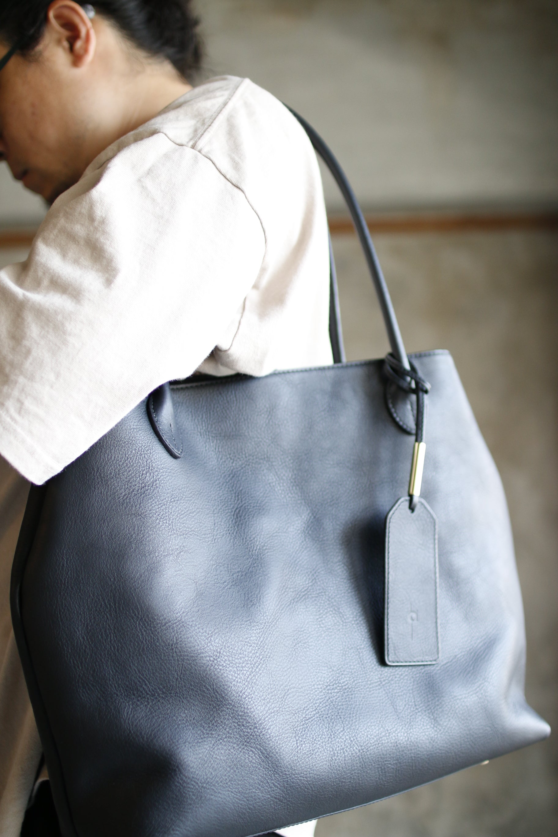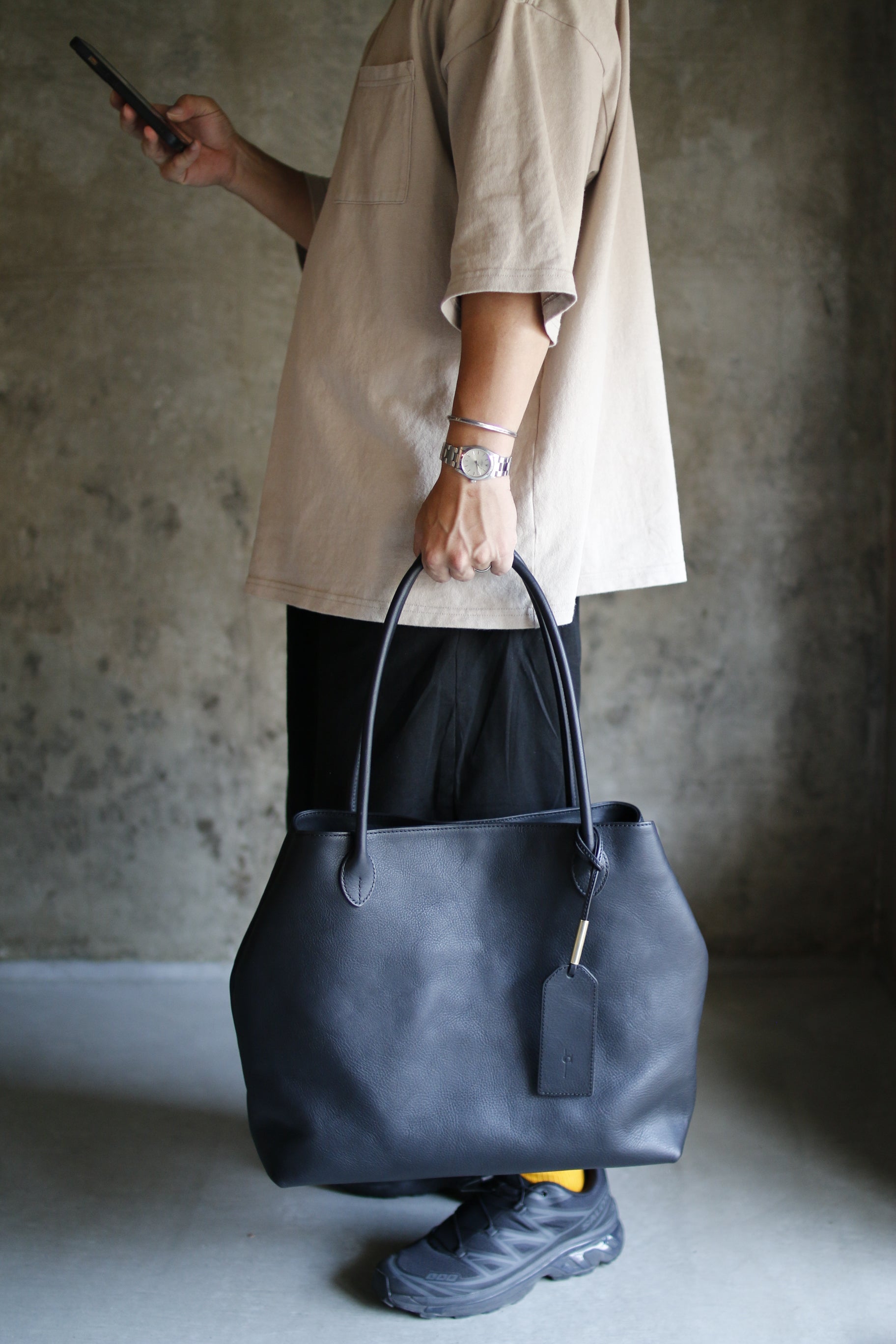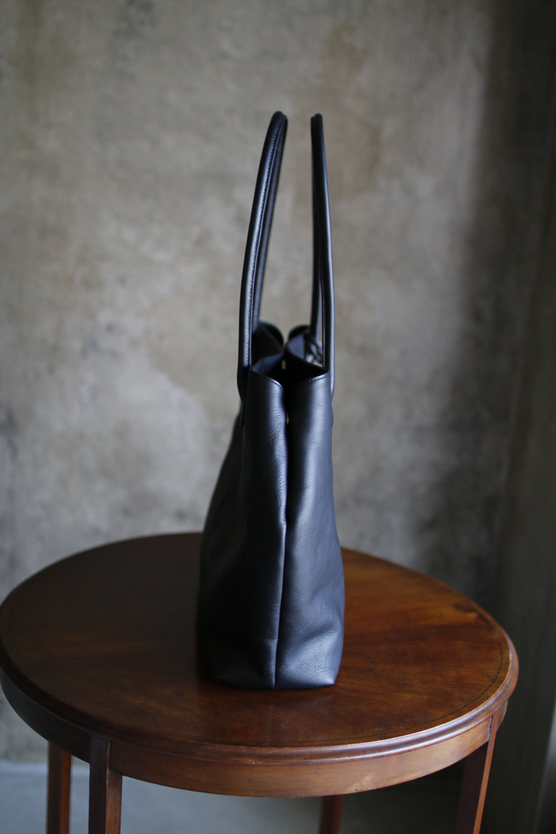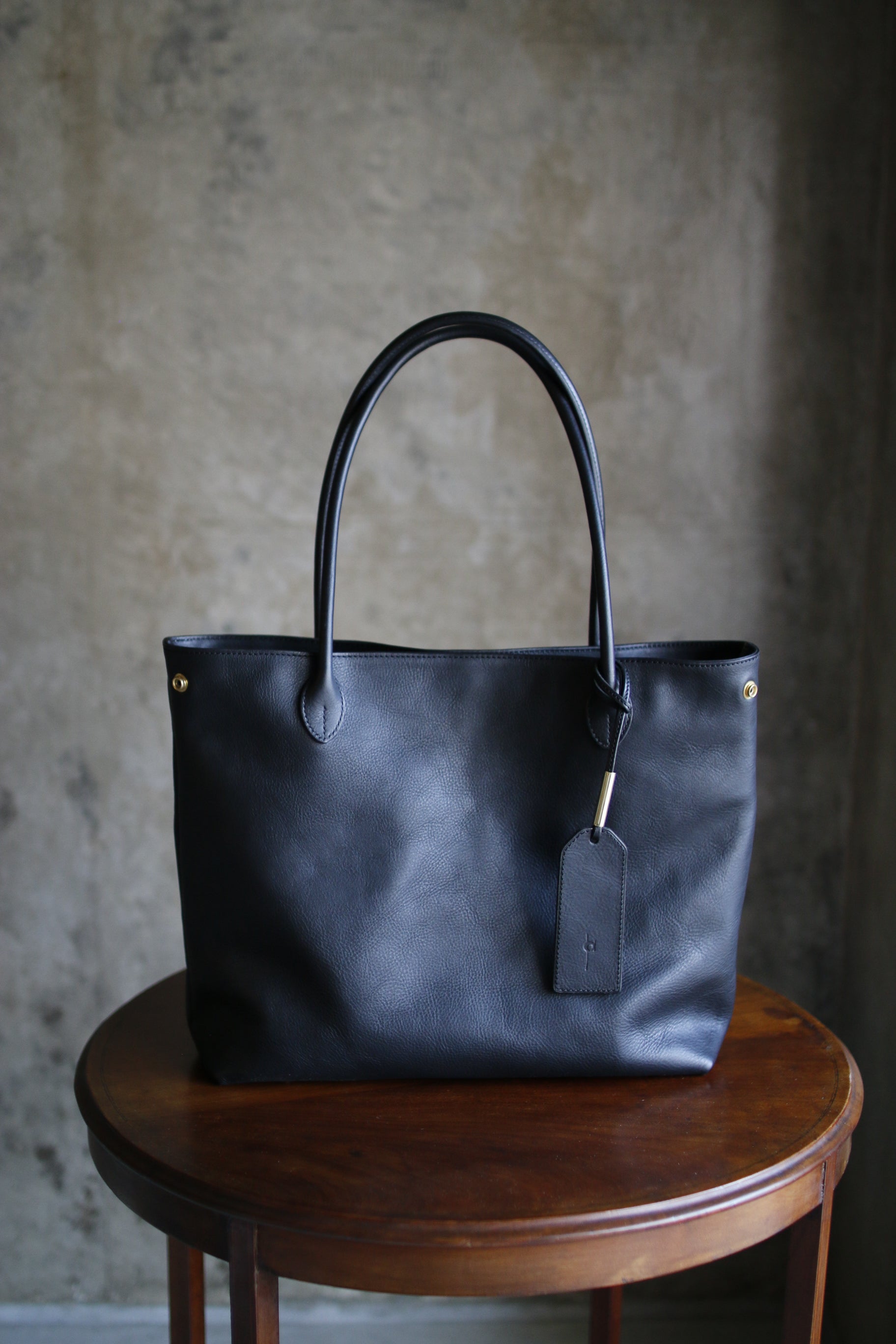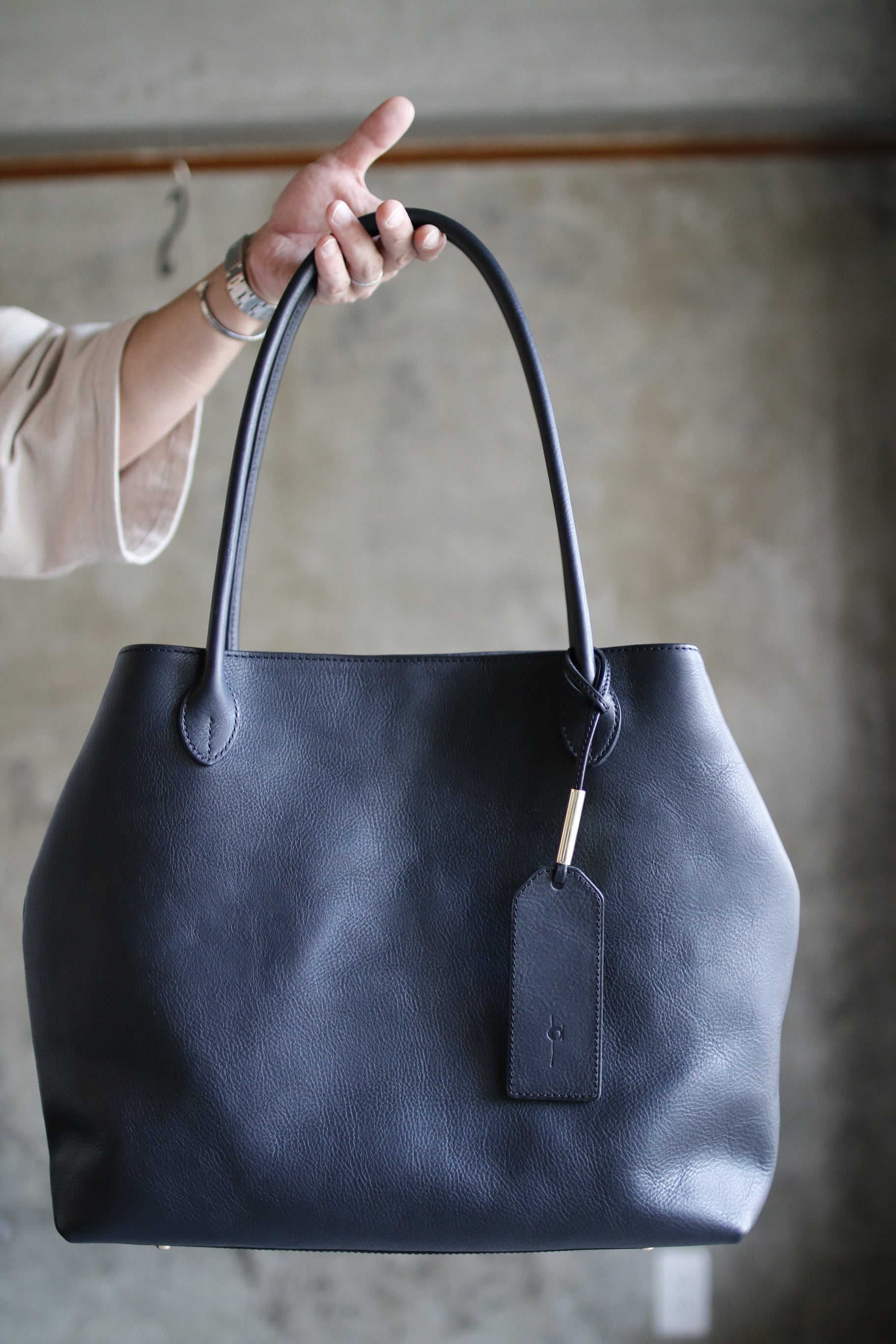 手縫い持ち手の曲線が美しいトートバッグ。