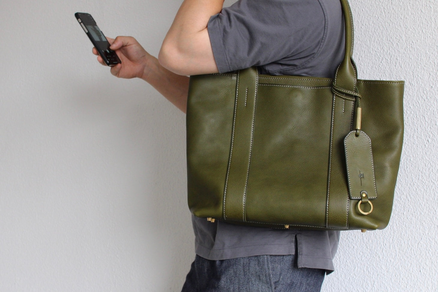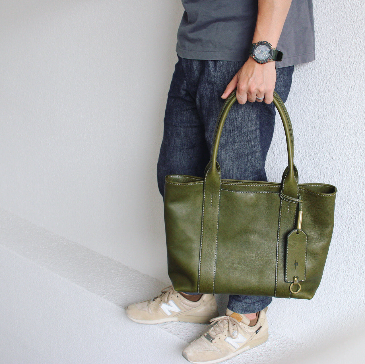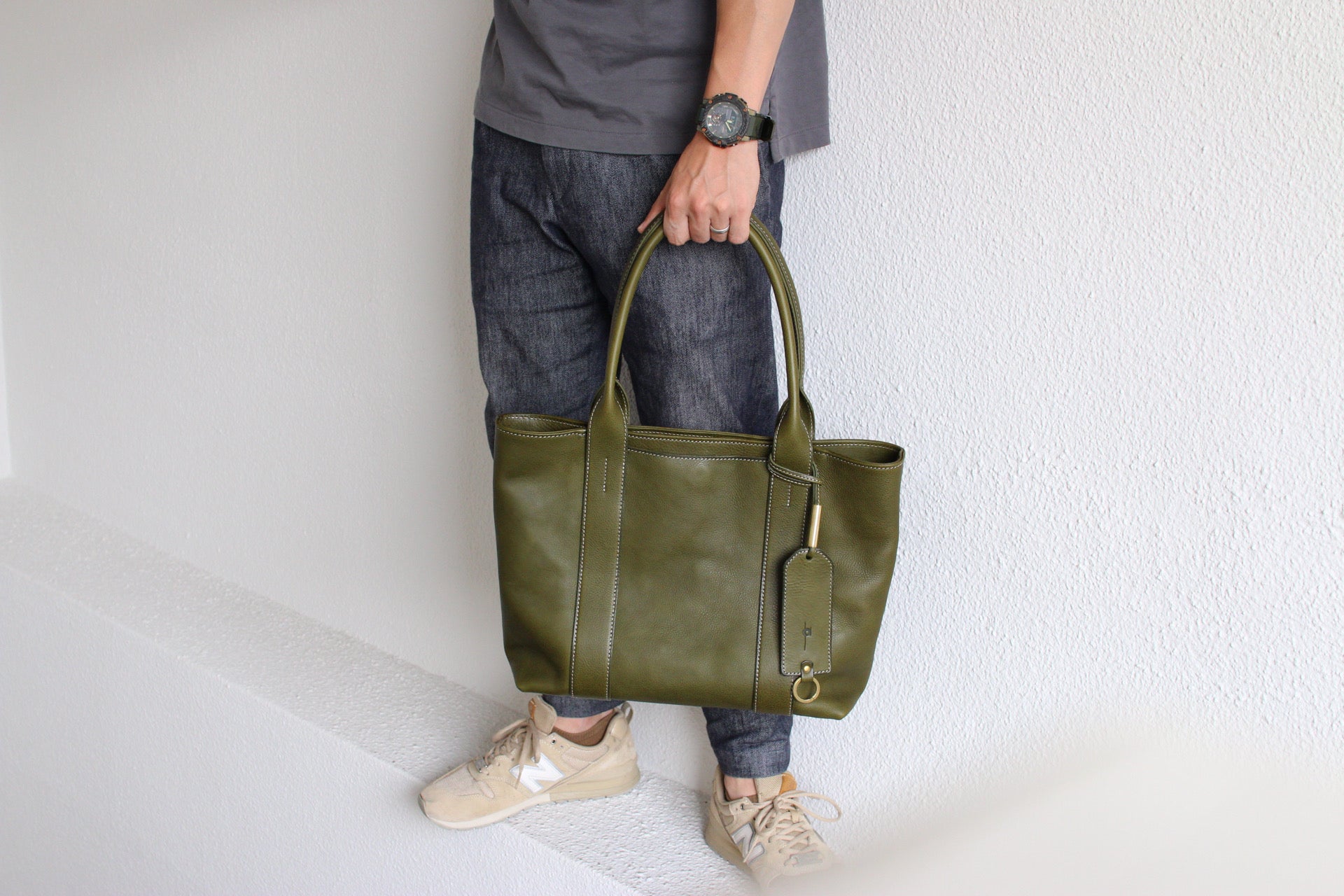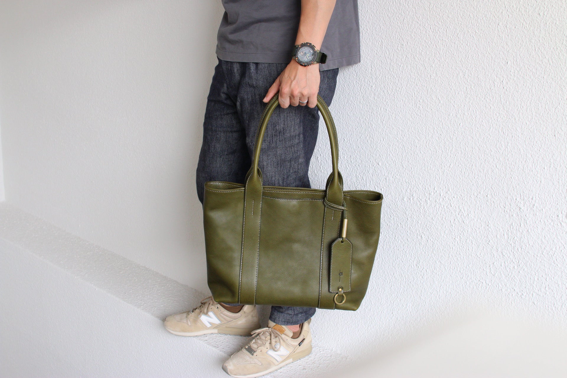 持ち手が本体部分にしっかりと縫い付けている堅牢なトートバッグ。