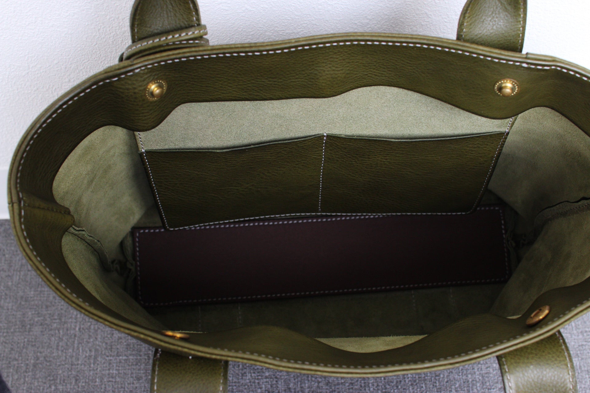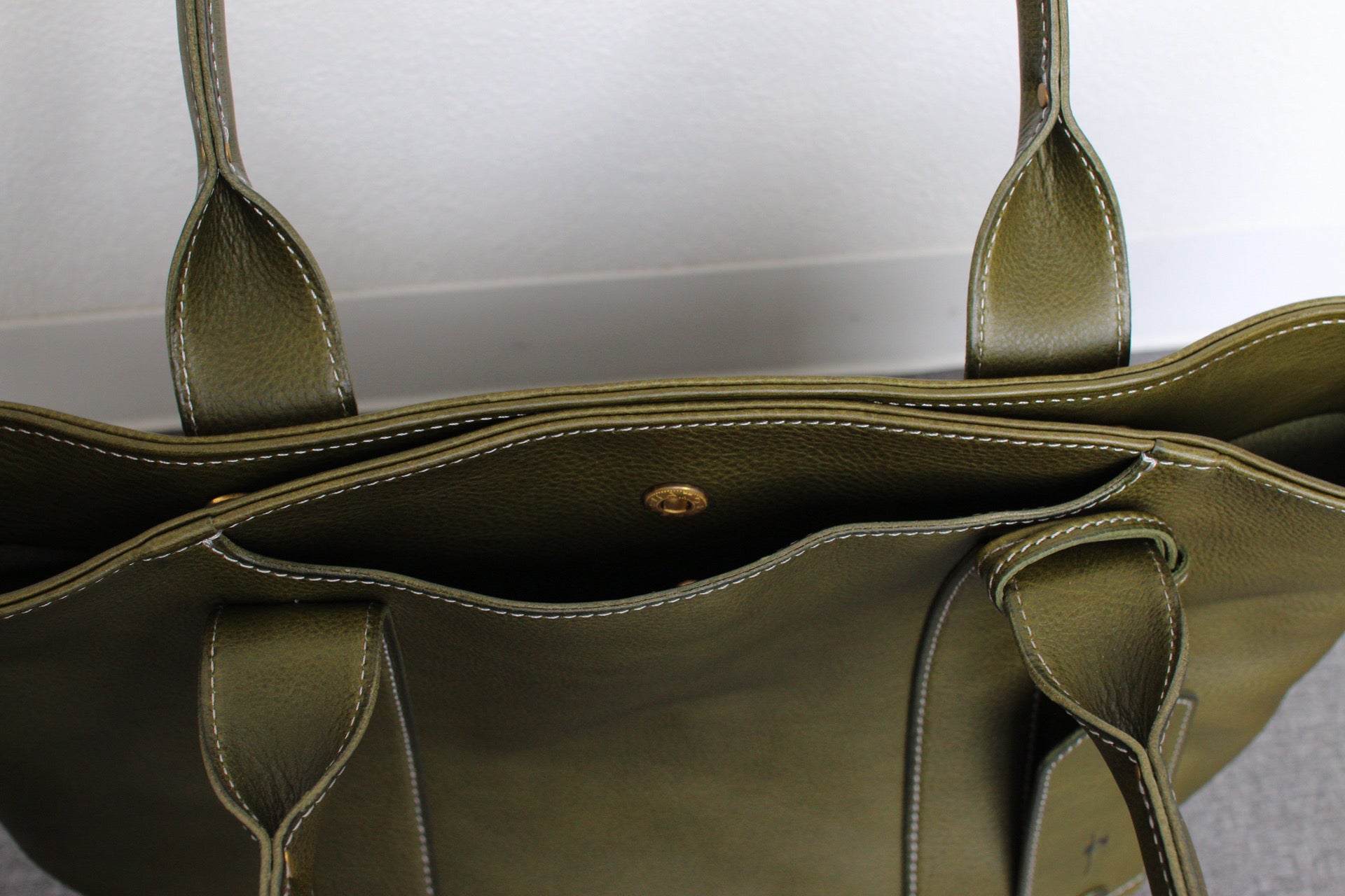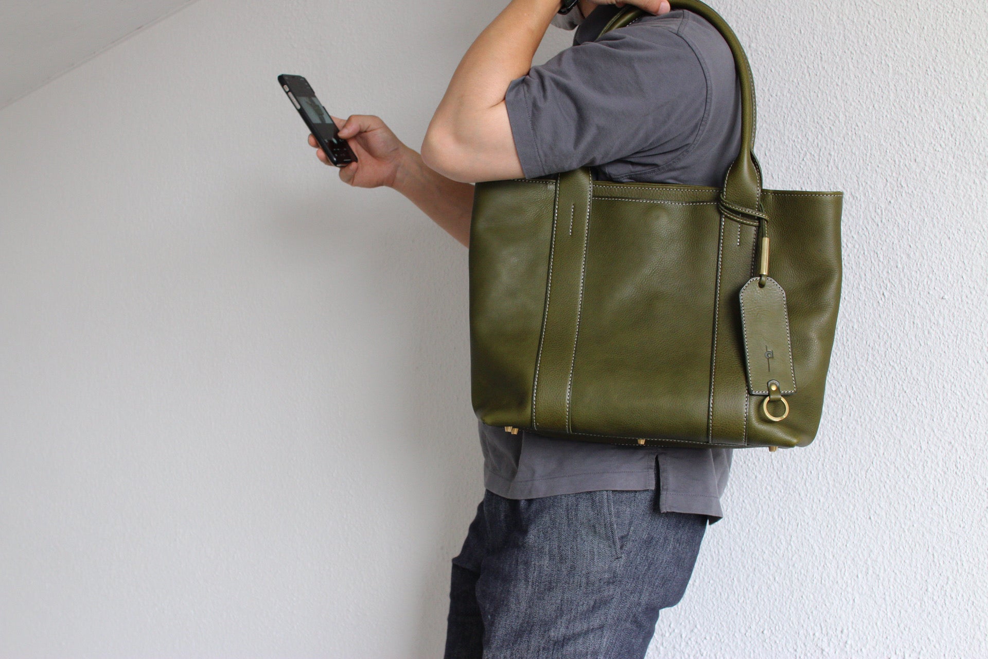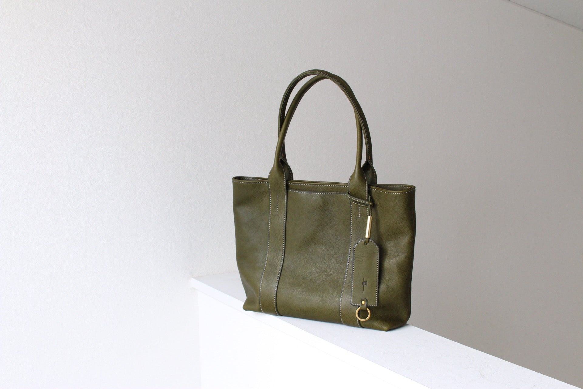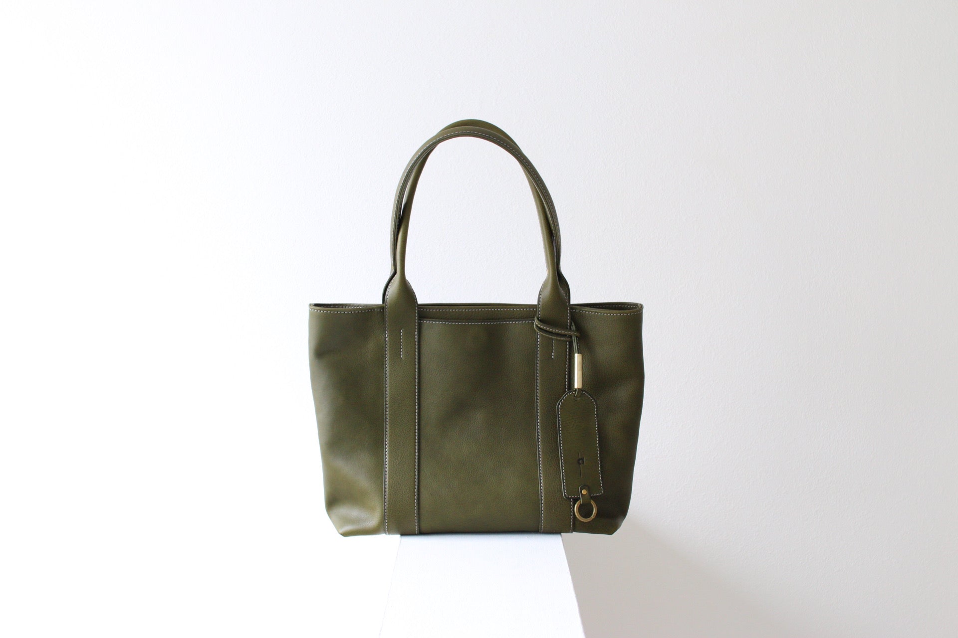持ち手が本体部分にしっかりと縫い付けている堅牢なトートバッグ。