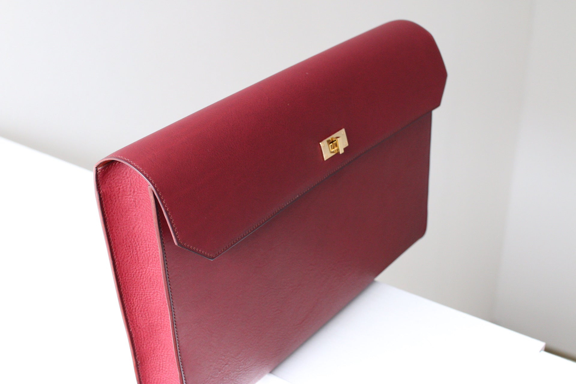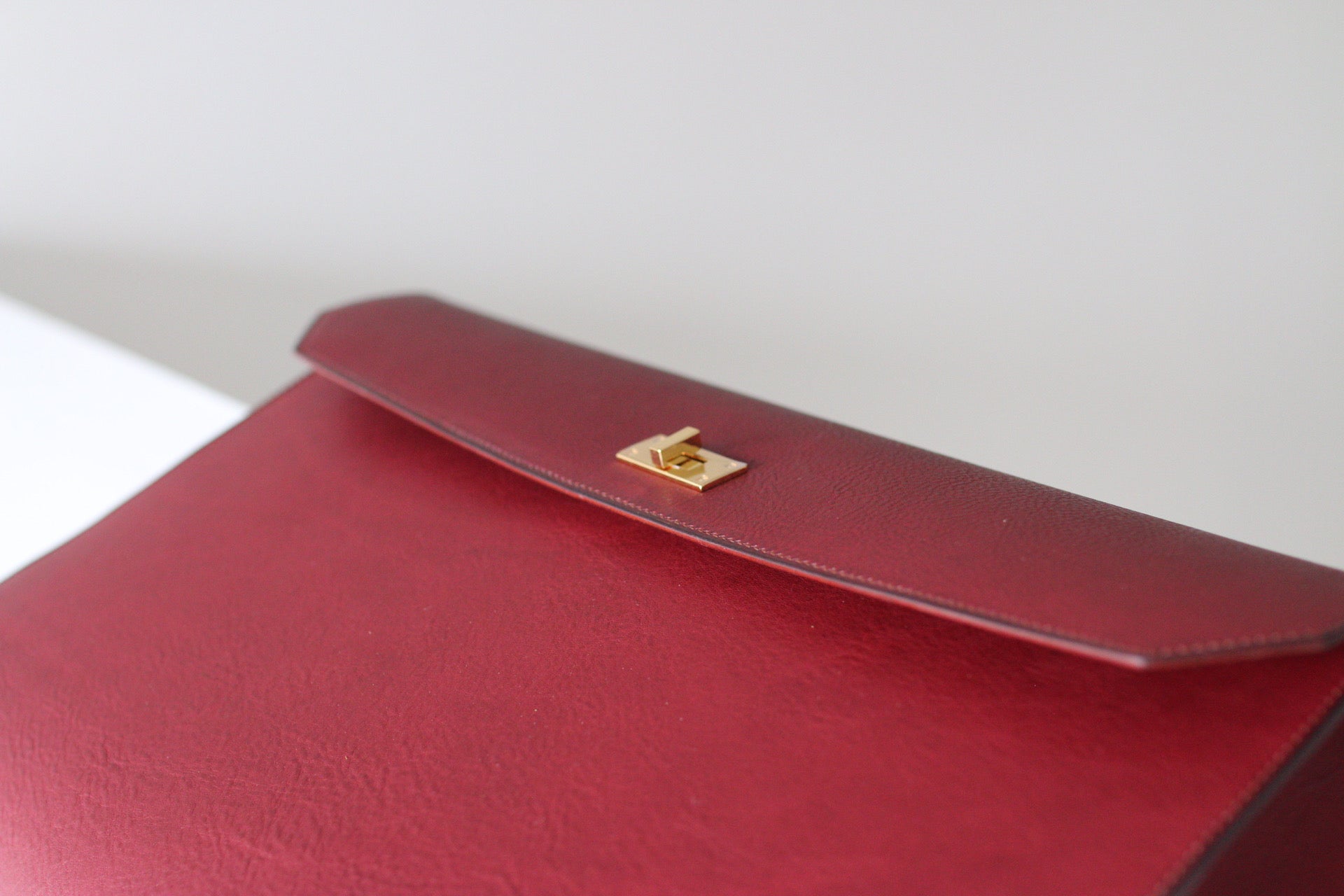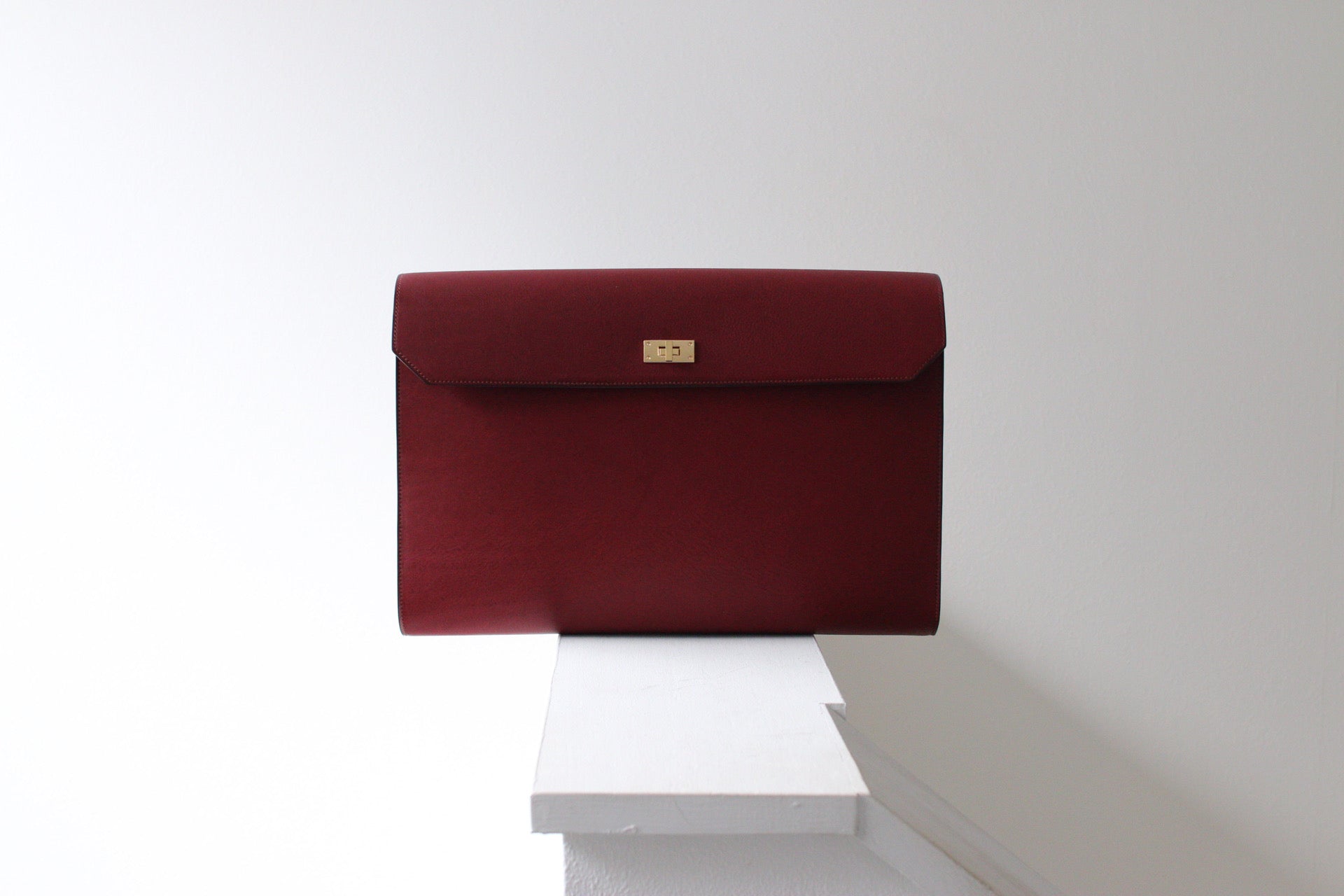 総手縫いのクラッチバッグ。
