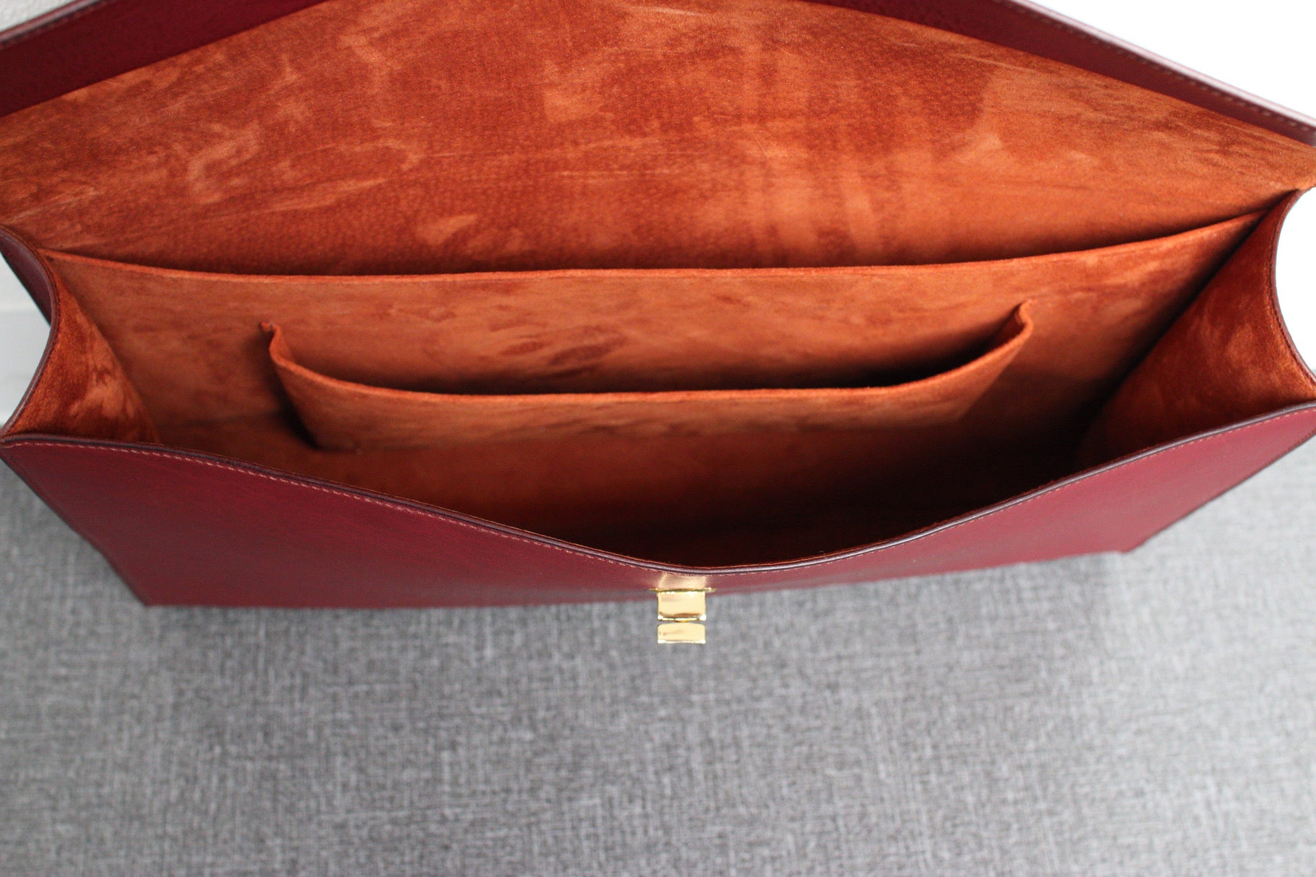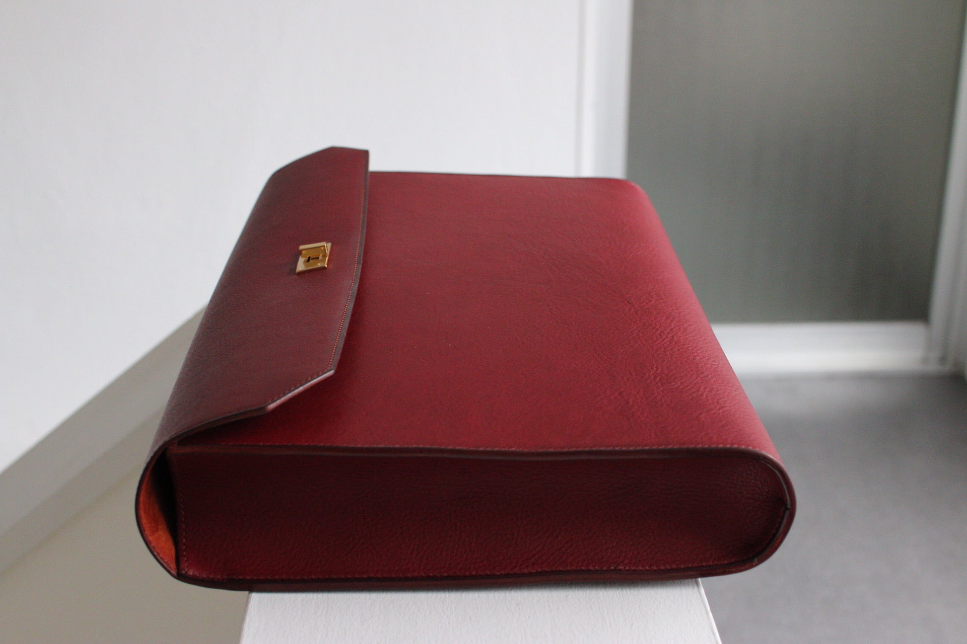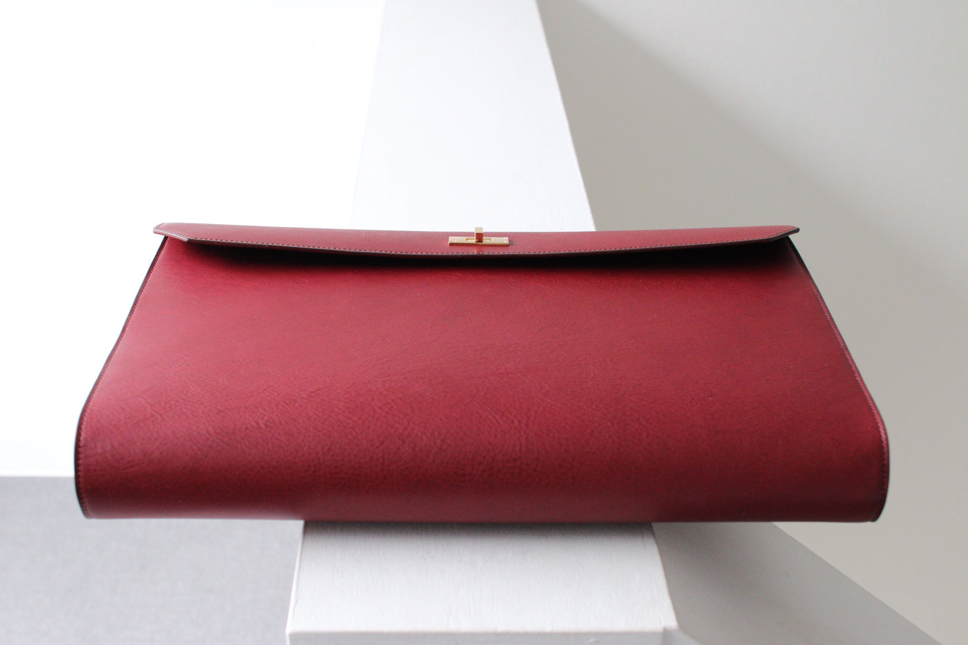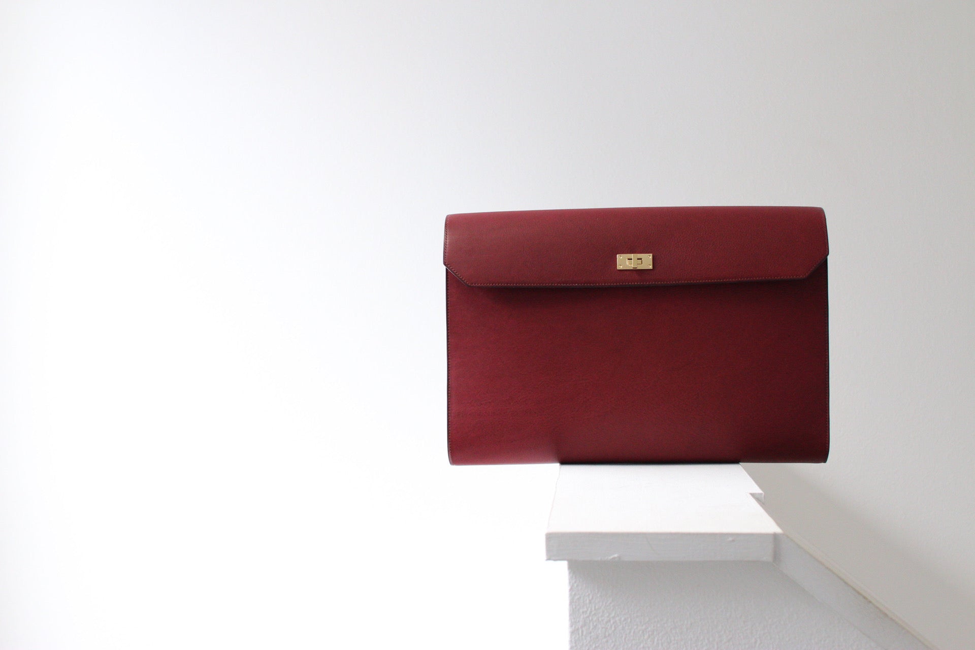 総手縫いのクラッチバッグ。