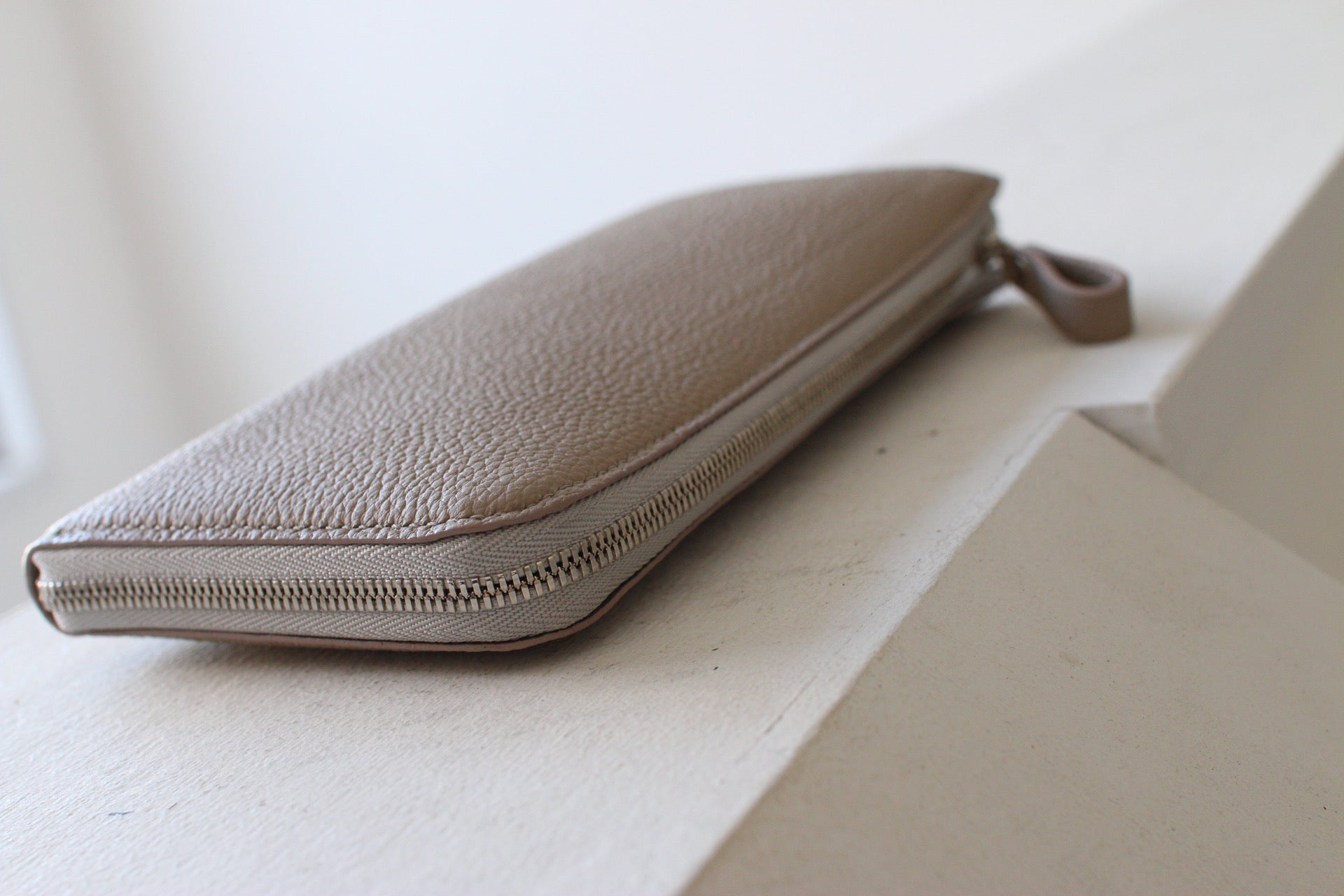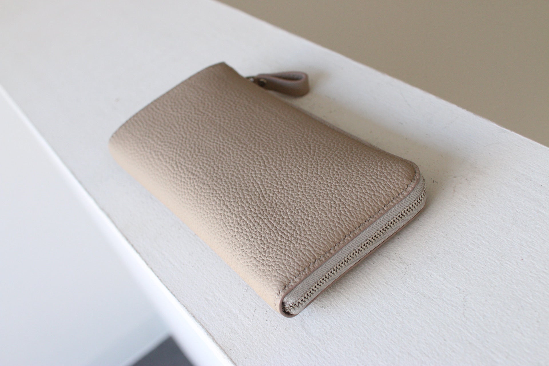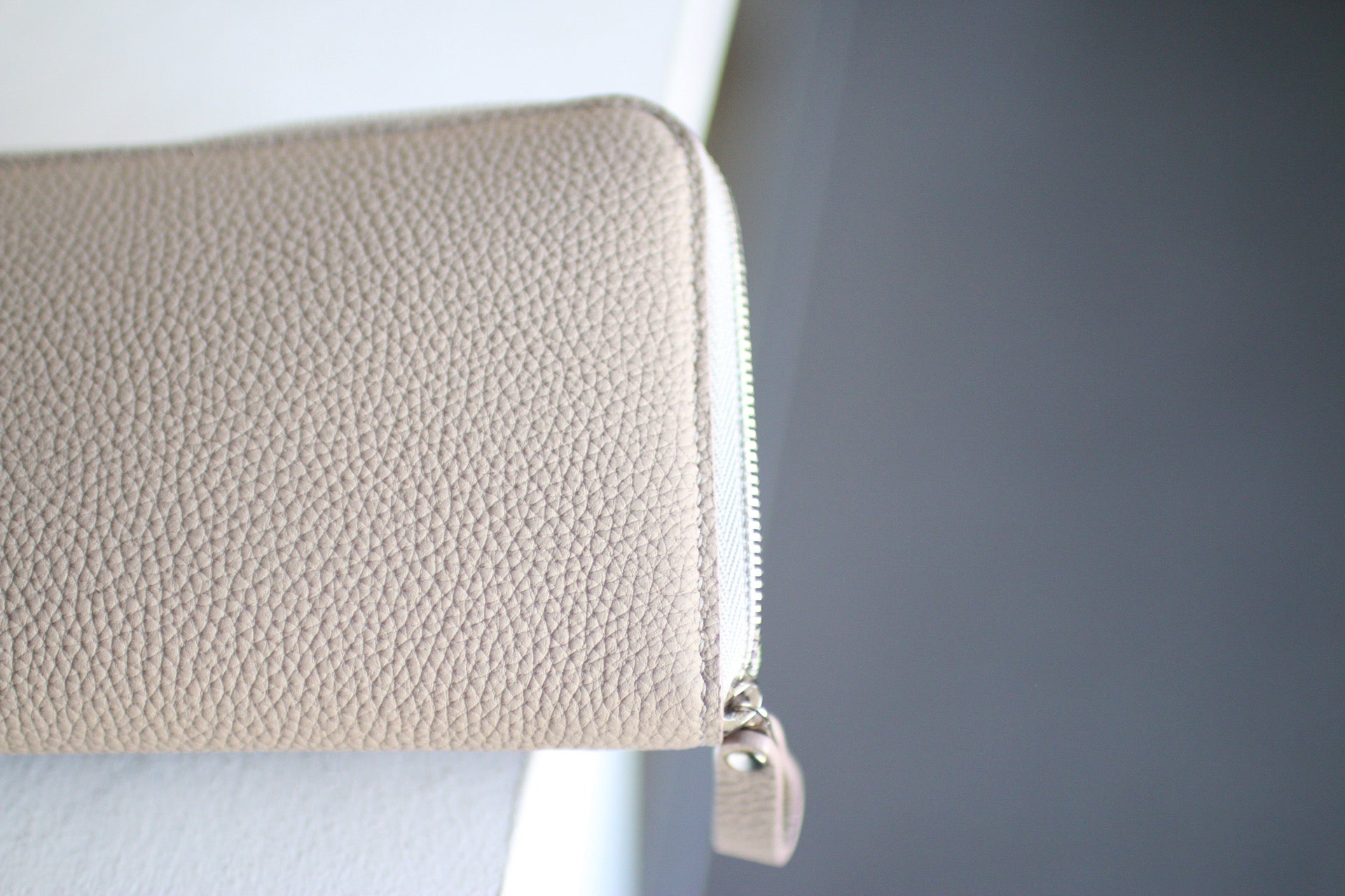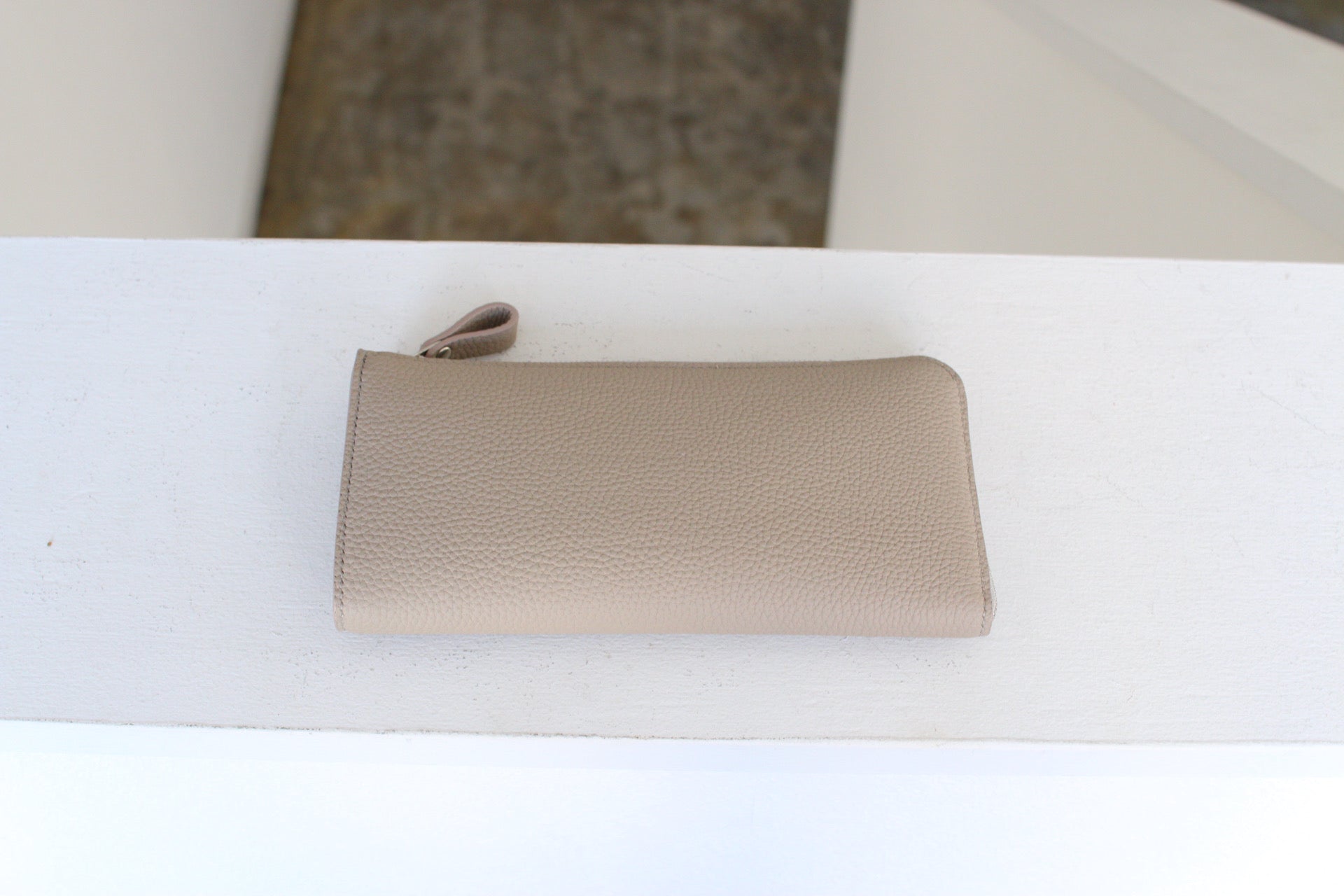 シュランケンカーフを使用したL字型ファスナー長財布。総手縫い仕立て。