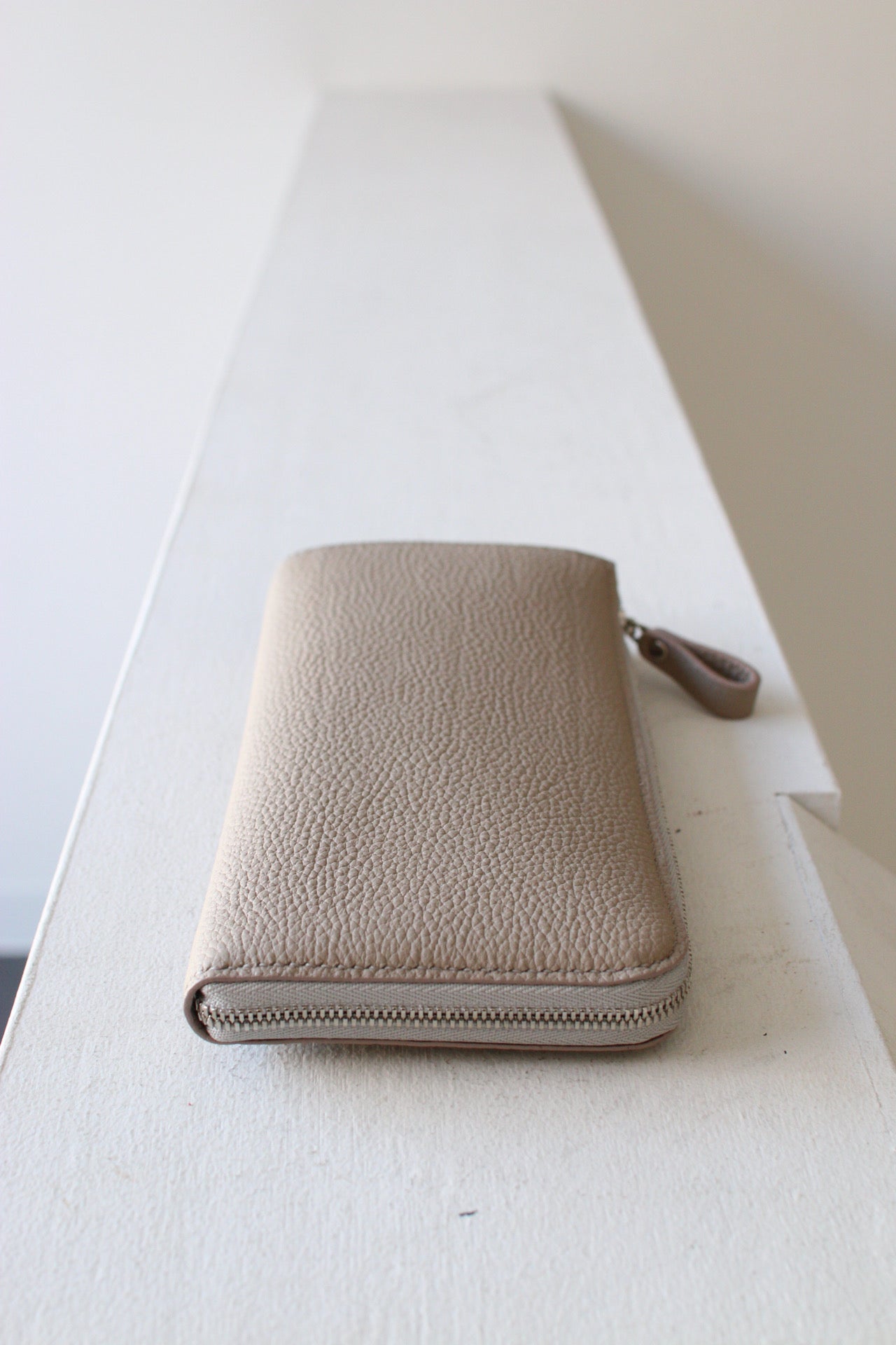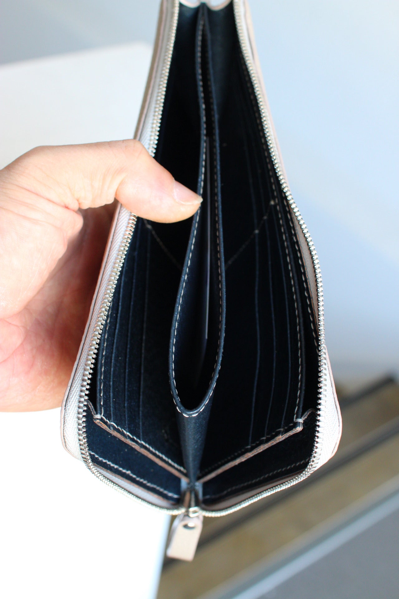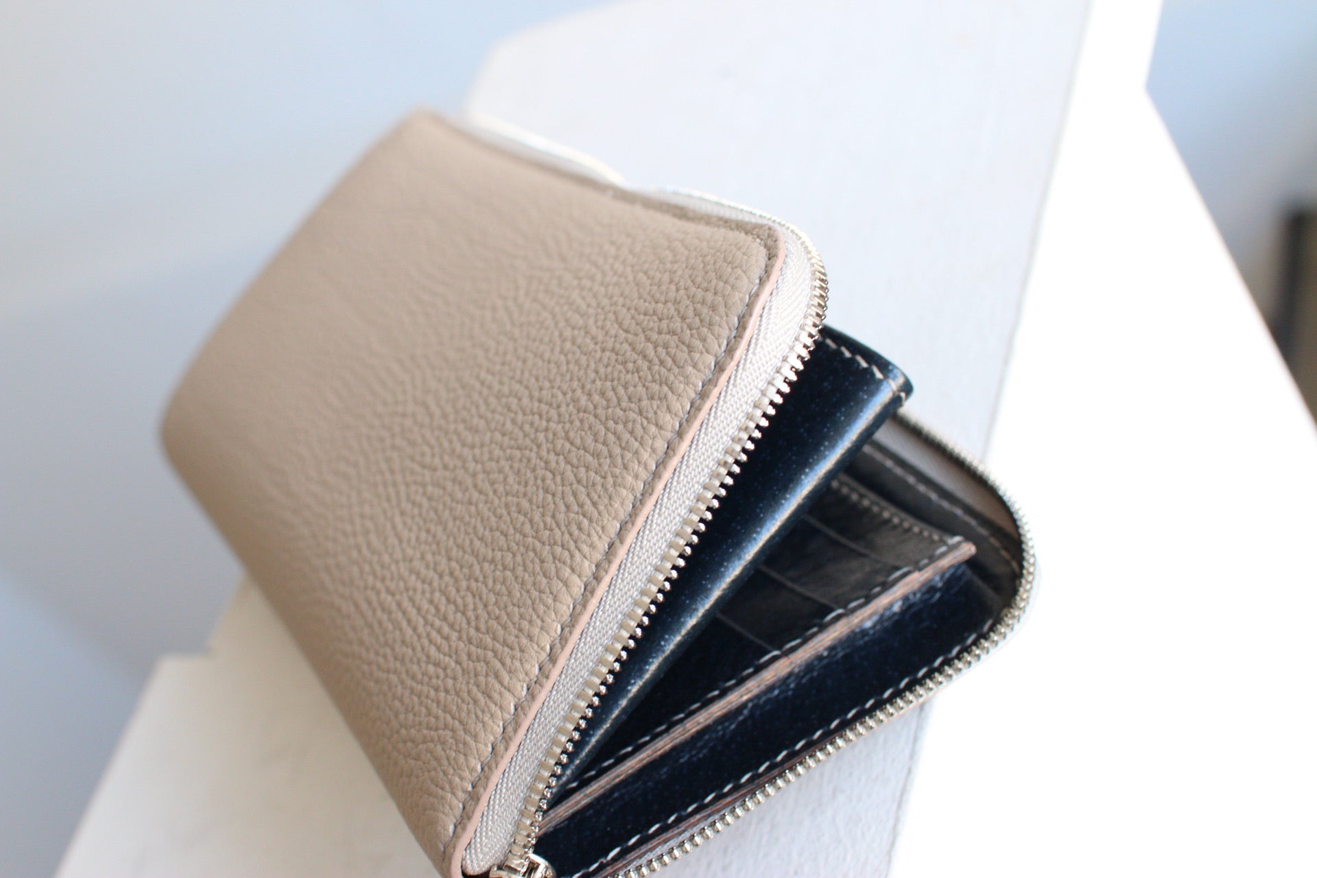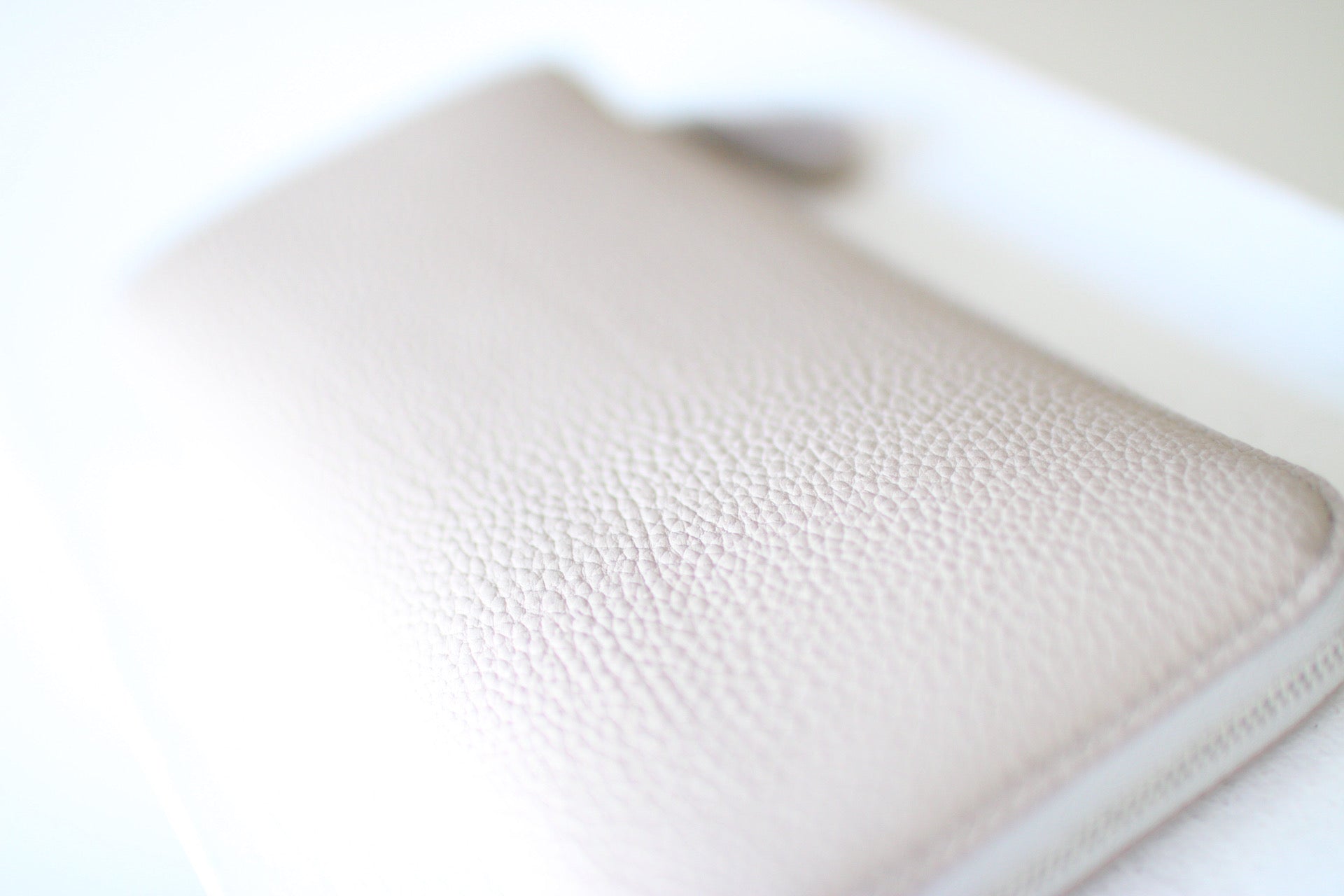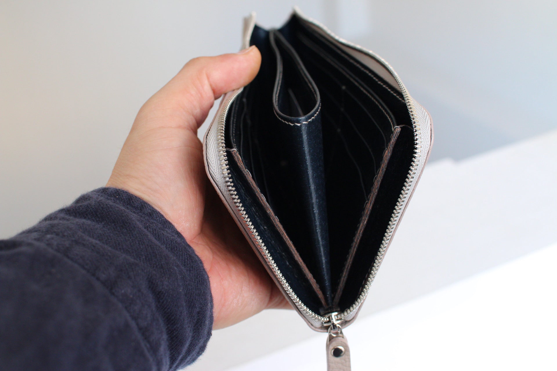 シュランケンカーフを使用したL字型ファスナー長財布。総手縫い仕立て。